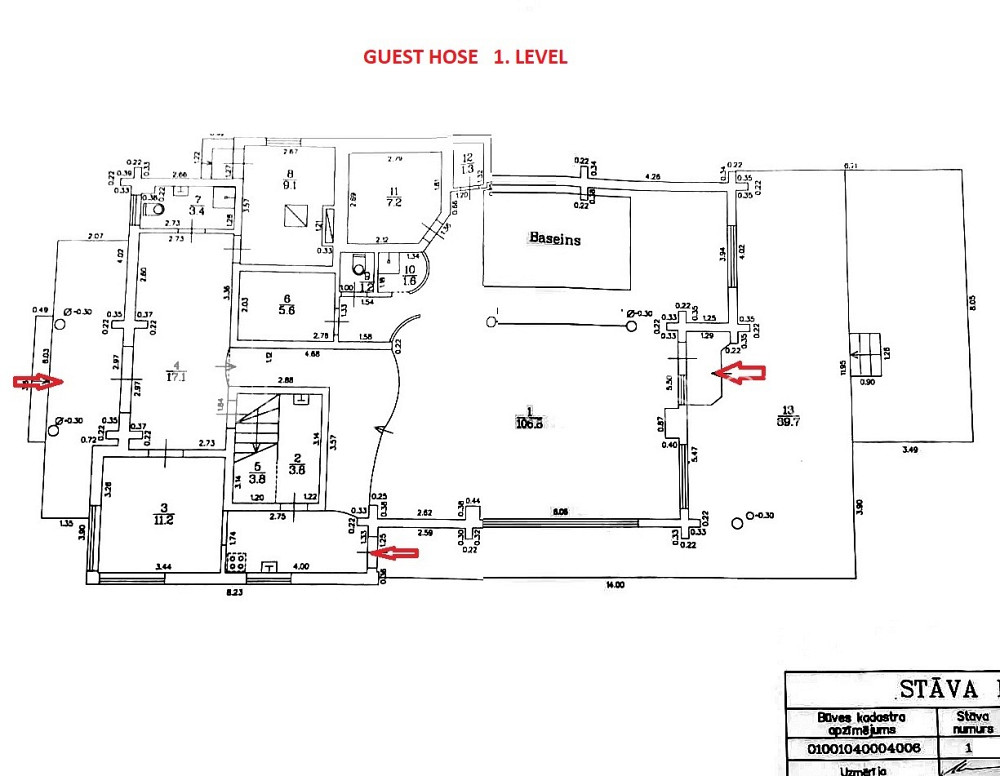 Šo dzīvokli izīrē pa diennaktīm (īstermiņa īre), īres cena sludinājumā norādīta par vienu diennakts īri. Muiža, viesu māja, guļbūve, labiekārtota apzaļumota teritorija 15339 m2, bruģēts piebraucamais ceļš, iežogota teritorija, vieta vairākām automašīnām, apsargāta teritorija, divi balkoni, trīs terases, baseins, sauna, plašs skats no loga, istabas izolētas, viesistaba, virtuve, atpūtas telpa, palīgtelpa, vairākas halles, veļas mazgātava, augstie griesti, vairākas ieejas, kamīns, granulu apkure, boilers karstajam ūdenim, divos līmeņos, pilnā apdare, koka stikla pakešu logi, parketa grīda, flīžu grīdas segums, vairāki sanitārie mezgli, dušas kabīne, džakūzī vanna, stūra vanna, internets, signalizācija, iznomā ar visu bildēs redzamo aprīkojumu, iespēja īrēt/nomāt pa stundām, atbrīvots, uz zemes ir dīķis, atrodas blakus mežam, uz zemes teritorijas ir vairākas būves, saimniecības ēka, viesu nams, dārza lapene, zem mājas pagrabs, malkas šķūnis, pirts, līdz lidostai 10 km, stratēģiski izdevīga vieta, līdz autobusa pieturai 100 m, cena diennaktī atkarīga no personu skaita, Jums būs jāmaksā avansā visa summa par minimālo īres laiku, CITY REAL ESTATE ID - 515124