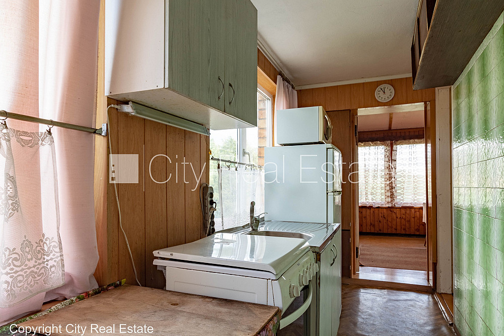 Vasarnīca, slēgta teritorija, vieta automašīnai, 2 gab. verandas, istabas izolētas 4 gab., virtuve 2 gab., palīgtelpa, divas ieejas, saglabāta krāsns, malkas apkure, boilers karstajam ūdenim, daļēji mainīti logi, koka dēļu grīdas segums, linoleja grīdas segums, flīžu grīdas segums, tualete ārpus mājas, pārdod ar visu bildēs redzamo aprīkojumu, atbrīvots, zeme robežojas ar grants seguma ceļu, līdz upei 900 m, ir elektrība, vietējā kanalizācija, iespēja pieslēgties gāzes pievadam, spice, uz zemes teritorijas ir vairākas būves, malkas šķūnis, pirts, siltumnīca, augļu koku dārzs, netālu no galvenās šosejas, iespēja iegādāties papildus zemi, nav apgrūtinājumu, reģistrēts zemesgrāmatā, ir veikts īpašuma vērtējums, līdz centram 10 km, stratēģiski izdevīga vieta, līdz autobusa pieturai 500 m, CITY REAL ESTATE ID - 517559