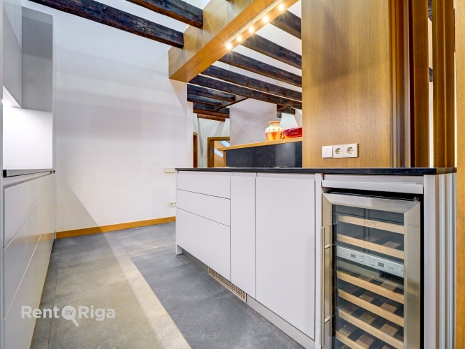 Pilnībā aprīkots un mēbelēts dzīvoklis ēkas augšējā stāvā, ar divām pazemes autostāvvietām un gudrās mājas sistēmu. No plašās terases paveras skats pār ozolu un priežu galotnēm. Dzīvoklis ir vienā līmenī, bez kāpnēm. Nodrošināts pilnīgs privātums un lieliska trokšņu izolācija, jo šis ir vienīgais dzīvoklis ēkas augšējā stāvā. Kopējā platība 244 m, tai skaitā terase 60 m. Papildus divas mantu glabāšanas telpas (58 m un 39 m), kas neietilpst dzīvokļa kopējā platībā. Cenā iekļautas mēbeles un divas pazemes autostāvvietas. Plānojums: Plaša viesistaba ar virtuvi, ēdamzonu un izeju uz terasi; Koridors ar atpūtas zonu un plašu glabātuvi; Divas bērnu istabas ar izeju uz terasi; Vecāku guļamistaba ar garderobi; Divi sanmezgli viens ar dušu, otrs ar vannu; Saulaina un plaša terase ar skatu uz mežu. Dzīvoklis aprīkots ar gudrās mājas sistēmu: attālināti vadāma videonovērošana un apsardze; attālināti regulējama apkure un logu sensori; pilnīga vadība no viedtālruņa. Grīdas klātas ar trīsslāņu ozolkoka parketu BOEN ar papildus siltuma un skaņas izolāciju. Vannas istabas aprīkotas ar Villeroy & Boch un GROHE santehniku un flīzēm. Dizaina apgaismojums no GAISMAS MAĢIJA salona spāņu un itāļu ražotāji. Veļas un trauku mazgājamās mašīnas MIELE. Virtuve izgatavota pēc individuāla pasūtījuma, ar BLUM SERVO-DRIVE elektronisko atvēršanas sistēmu bez rokturiem. Iebūvētā tehnika NEFF un LIEBHERR, plīts virsma ar integrētu tvaika nosūcēju BORA, vīna skapis CASO. Virtuves un bāra lete aprīkota ar LED apgaismojumu, kas vakarā rada siltu un elegantu atmosfēru. LED apgaismojums iebūvēts arī grīdā divās guļamistabās un koridorā ar regulējamu krāsu un intensitāti. Mēbeles Ozzio Italia, HULSTA, Westwing un citi augstākās klases zīmoli. Projekts Brīvdabas nams atrodas gleznainā meža ielokā, blakus Brīvdabas muzejam un Juglas ezeram. Tas saņēmis FIABCI Baltic Prix dExcellence 2016 balvu kā labākais dzīvesstila projekts Rīgā, apvienojot galvaspilsētas dinamiku, greznu arhitektūru un privātu parku. Teritorija ir iežogota, labiekārtota ar gājēju celiņiem, atpūtas vietām, bērnu laukumu un piknika zonu. Tuvumā Brīvdabas muzejs, Juglas ezers, SKY Berģi (2 min. brauciens), SAGA, IKEA un AKROPOLE ALFA (10 min. attālumā). Blakus skolas, bērnudārzi un autobusa pietura (100 m). Veloceļš ļauj ērti nokļūt līdz pat Vecrīgai, atstājot auto garāžā. Un visbeidzot brīnišķīgi kaimiņi. Lūdzu, sazinieties, ja vēlaties uzzināt vairāk vai apskatīt šo īpašumu klātienē.