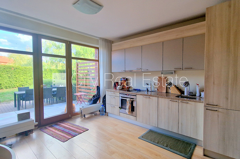Projekts - Apogi, rindu māja, jaunceltne, labiekārtota apzaļumota teritorija, garāža vienai automašīnai, vieta automašīnai, apsargāta teritorija, pagalmā bērnu spēļu laukums, pirmais stāvs ar dārzu, divas terases, divstāvīgs, studio tipa, virtuve apvienota ar viesistabu, palīgtelpa, gāzes apkure, apkures skaitītāji, individuāla apkures sistēmas uzskaite, pilnā apdare, lielie skatlogi, koka stikla pakešu logi, jumta logi, parketa grīda, divi sanitārie mezgli, vanna, dušas kabīne, iebūvēta virtuves iekārta, iebūvēti sienas skapji, ledusskapis, trauku mazgājamā mašīna, elektriskā plīts, cepeškrāsns, veļas mašīna, internets, signalizācija, atbrīvo augustā, līdz ezeram, līdz jūrai, līdz pilsētas centram, stratēģiski izdevīga vieta, CITY REAL ESTATE ID - 436132