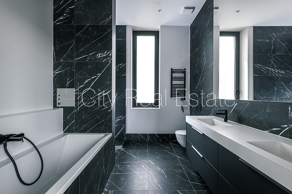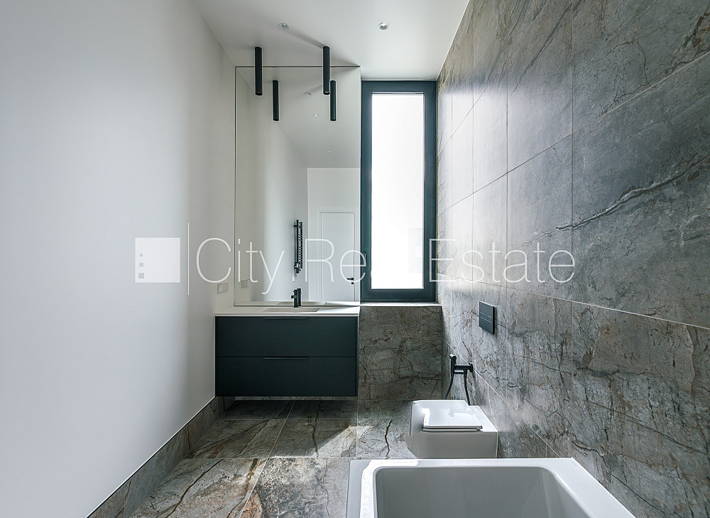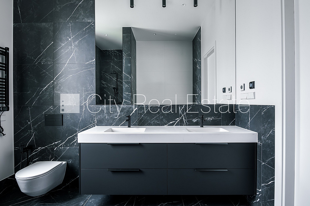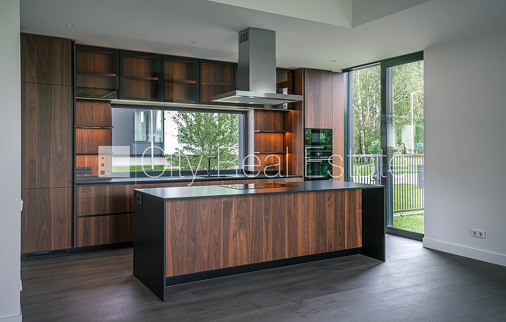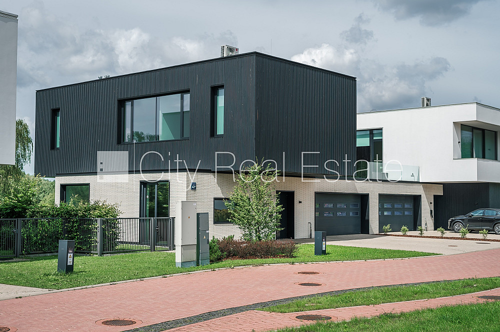 Dvīņu māja, labiekārtota apzaļumota teritorija, bruģēts piebraucamais ceļš, iežogota teritorija, garāža divām automašīnām, apzaļumota teritorija ar jaunu kokaugu stādījumiem, divas terases, plašs skats no loga, istabas izolētas 3 gab., studio tipa, virtuve apvienota ar viesistabu, garderobe, halle, kabinets, palīgtelpa, veļas mazgātava, divas ieejas, gāzes apkure, apkures skaitītāji, individuāla apkures sistēmas uzskaite, divos līmeņos, pilnā apdare, apsildāma grīda vannas istabā, lielie skatlogi, alumīnija stikla pakešu logi, koka dēļu grīdas segums, flīžu grīdas segums, trīs sanitārie mezgli, vanna, dušas kabīne, iebūvēta virtuves iekārta, iebūvēti sienas skapji, gaisa kondicionieris, ledusskapis, trauku mazgājamā mašīna, elektriskā plīts, cepeškrāsns, tvaika nosūcējs, mikroviļņu krāsns, optiskais internets, signalizācija, diennakts videonovērošana, atbrīvots, līdz centram 7 km, līdz parkam 1,8 km, stratēģiski izdevīga vieta, CITY REAL ESTATE ID - 516654