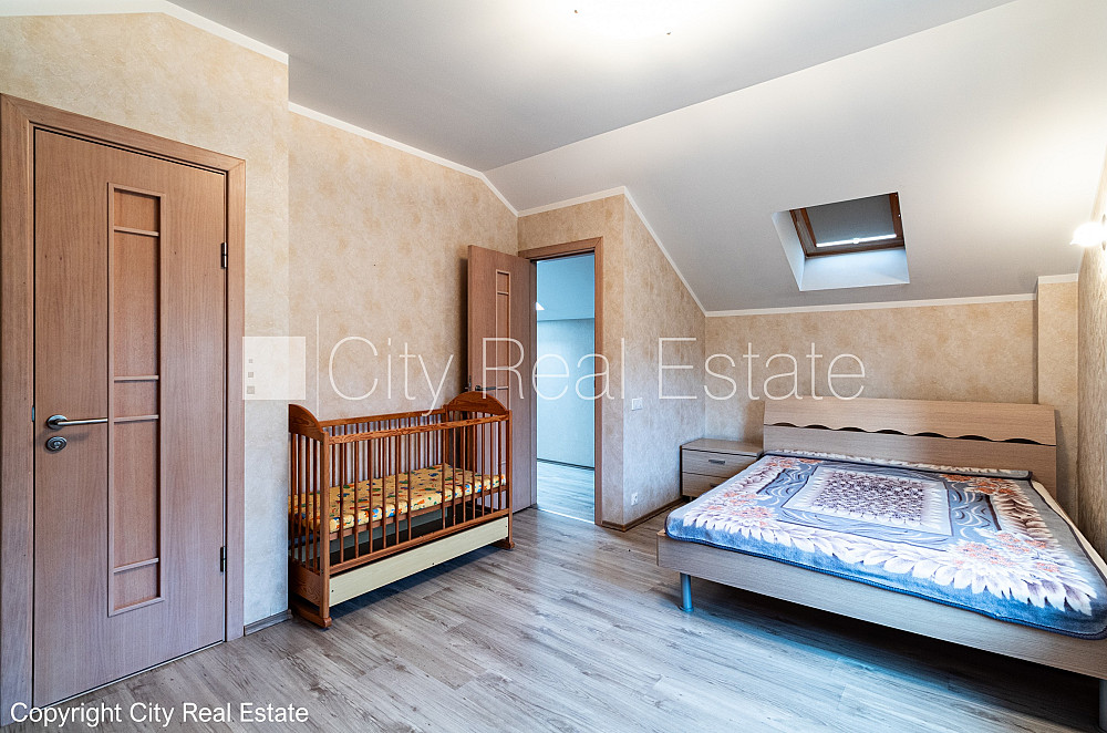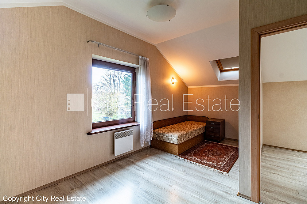 Zeme īpašumā, privātmāja, viesu māja, bitumena hidroizolācijas jumta segums, energo efektīva māja, labiekārtota apzaļumota teritorija 1505 m2, iežogota teritorija ar koka sētu, teritorijas iebrauktuves vārti aprīkoti ar automatizētu atvēršanās un aizvēršanās sistēmu, garāžas vārti aprīkoti ar automatizētu atvēršanās un aizvēršanās sistēmu, vieta vairākām automašīnām, balkons, baseins, turku pirts, logi vērsti mājas abās pusēs, gaisa ventilācijas sistēma, divstāvīgs, studio tipa, virtuve apvienota ar istabu, garderobe, halle, palīgtelpa, veļas mazgātava, augstie griesti, divas ieejas, kamīns, elektriskā apkure, boilers karstajam ūdenim, uzstādīti karstā ūdens patēriņa skaitītāji, filtri ūdens attīrīšanai, gaisa kondicionieris ar siltuma funkciju, vairāki sanitārie mezgli, vanna, dušas kabīne, tualete, nodots ekspluatācijā 2007 gadā, saimnieka īpašums, līdz pilsētas centram 3 km, līdz Rīgai 2 km, līdz golfa laukumam 15 km, līdz skolai 1,6 km, līdz bērnudārzam 700 m, līdz lielveikalam 800 m, līdz jūrai 12 km, CITY REAL ESTATE ID - 515705