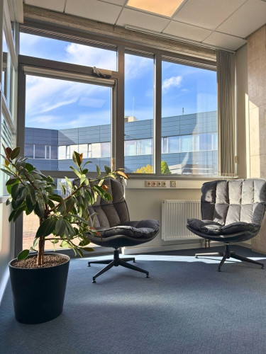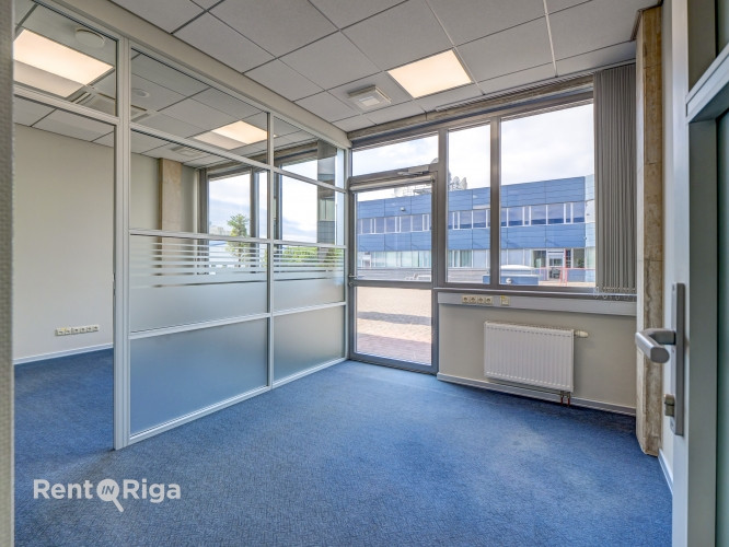 Biroja telpas ar bonusu - tiešo izeju uz terasi! Jauns birojs mūsdienīgā biroju ēkā. Telpas ir sadalītas trīs atsevišķos kabinetos, no kuriem lielākā ir sapulču telpa. Koplietošanas/koridora telpa ir apvienota ar virtuves zonu un nelielu noliktavas telpu. Ieeja birojā no kopējā gaiteņa, taču ir arī tiešā izejas uz plašu koplietošanas terasi. Terase ir lieliska vieta atpūtai vai neformālām sarunām svaigā gaisā. Ēkā pieejams arī lifts ērtai piekļuvei birojam. Ēkā pieejami šādi pakalpojumi un ērtības: + 24/7 piekļuve + pusdienu restorāns + automazgātava + videonovērošanas un pieejas kontroles sistēma + Lattelecom un CSC Telecom optiskais interneta ievads + draudzīgi kaimiņi + bezmaksas autostāvvietas darbiniekiem un klientiem + elektroauto uzlādes stacijas + profesionāla apsaimniekošana Komunālie patēriņi pēc standarta biroja statistikas gada griezumā sastāda ap 1,8 eur/m2. Cenas norādītas bez PVN. Birojs ir ērti pieejams gan ar auto, gan ar sabiedrisko transportu, nodrošinot Jūsu komandai un klientiem ērtu nokļūšanu.