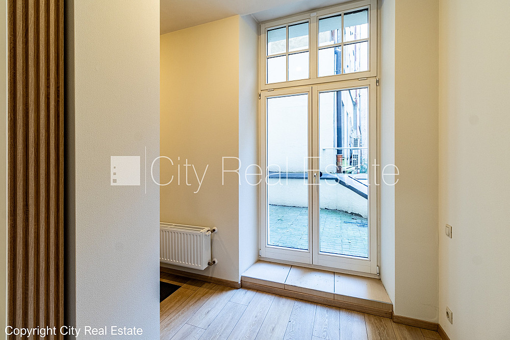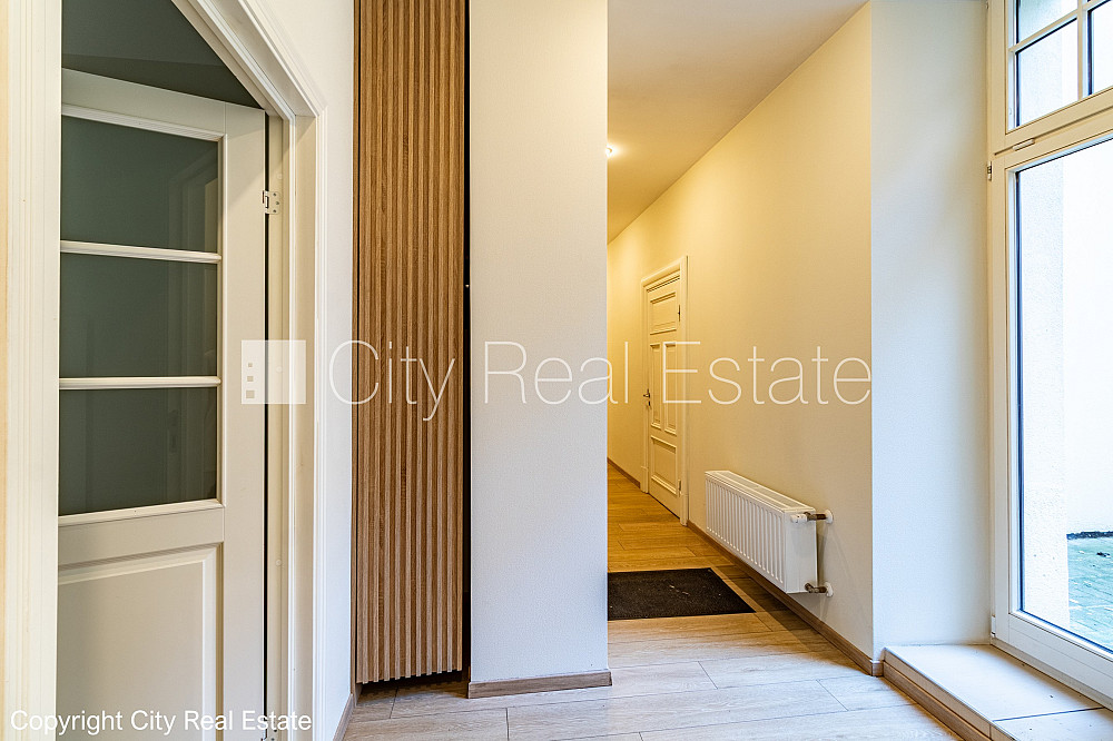 Pagalma māja, renovēta māja, ieeja no pagalma, terase, logi vērsti uz pagalma pusi, logi vērsti mājas abās pusēs, gaisa kondicionēšanas sistēma, viena telpa caurstaigājama, virtuve 5.3 m2, augstie griesti, mainīti radiatori, radiatori ar termoregulatoriem, centrālā apkure, uzstādīti karstā ūdens patēriņa skaitītāji, apkures skaitītāji, individuāla apkures sistēmas uzskaite, apsildāma grīda tualetē, koka stikla pakešu logi, krāsotas sienas, jauna santehnika, parketa grīda, flīžu grīdas segums, tualete 1,6 m2, iebūvēta virtuves iekārta, gaisa kondicionieris, optiskais internets, signalizācija, atbrīvots, slēdzot nomas līgumu, Jums būs jāmaksā par pirmo nomas mēnesi, kā arī jāiemaksā drošības depozīts, CITY REAL ESTATE ID - 497351