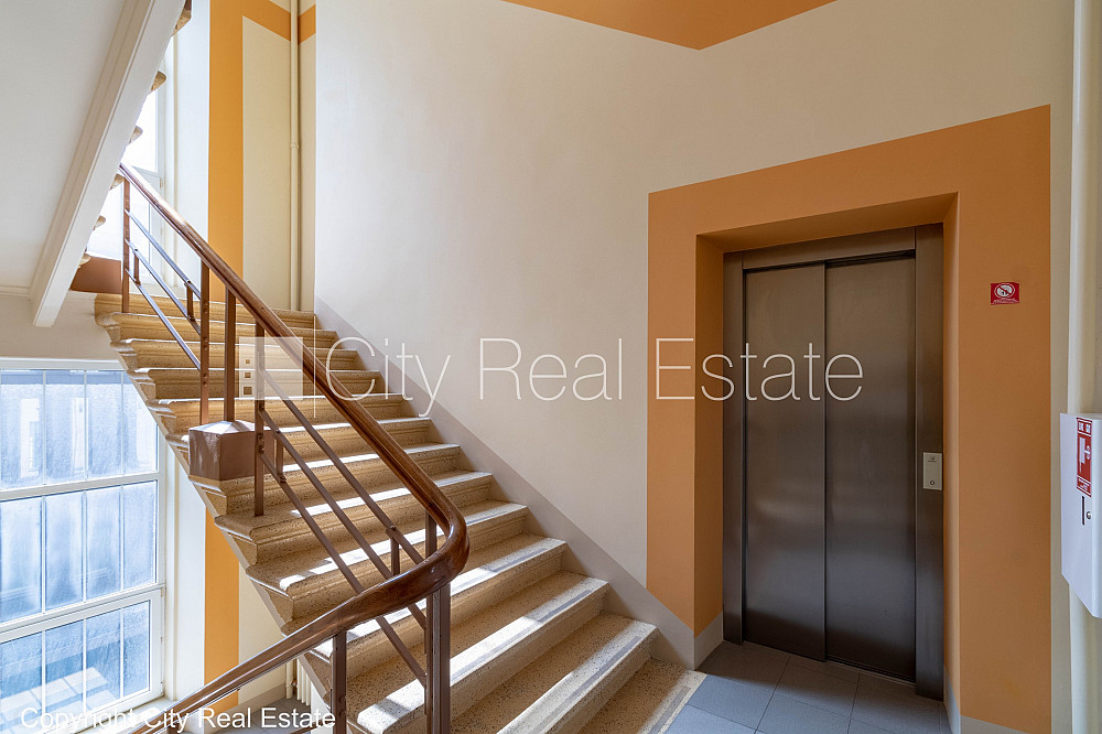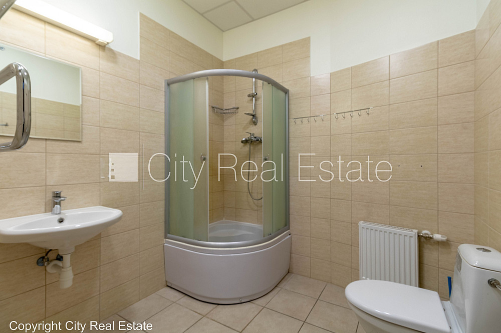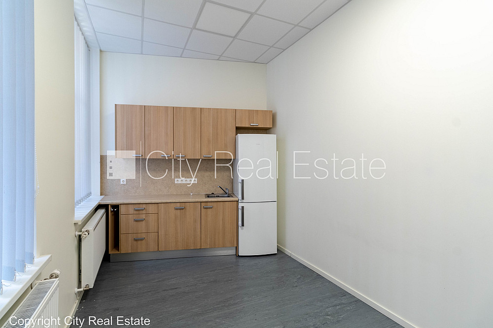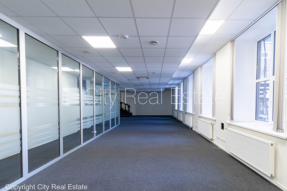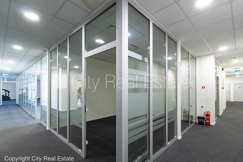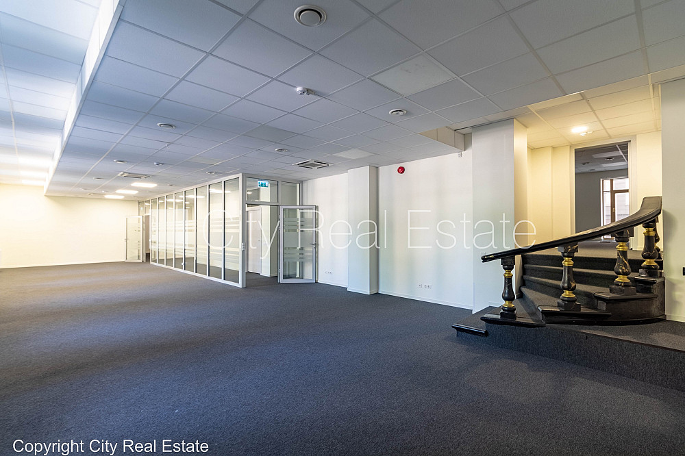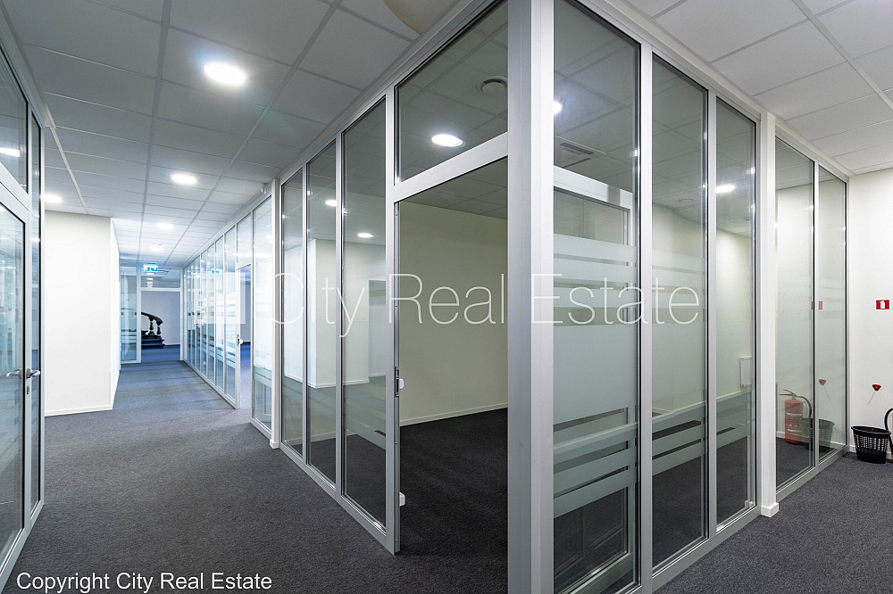 Fasādes māja, renovēta māja, viena kvadrātmetra apsaimniekošanas maksa mēnesī 1,6 EUR, apsargāta teritorija, ieeja no ielas, ir lifts, kāpņu telpa pēc kapitālā remonta, logi vērsti mājas abās pusēs, gaisa ventilācijas sistēma, virtuve, palīgtelpa, radiatori ar termoregulatoriem, centrālā apkure, pārplānots, pilnā apdare, plastikāta stikla pakešu logi, krāsotas sienas, paklāja grīdas segums, lamināta parketa grīda, divi sanitārie mezgli, dušas kabīne, iebūvēta virtuves iekārta, ledusskapis, caurstaigājamas izolētas telpas, ir iespēja nomāt mazāku platību 320 m2, internets, signalizācija, slēgta kāpņu telpa, viedkaršu caurlaides sistēma, atbrīvots, projektā vēl pieejamas komercplatības, stratēģiski izdevīga vieta, CITY REAL ESTATE ID - 454402