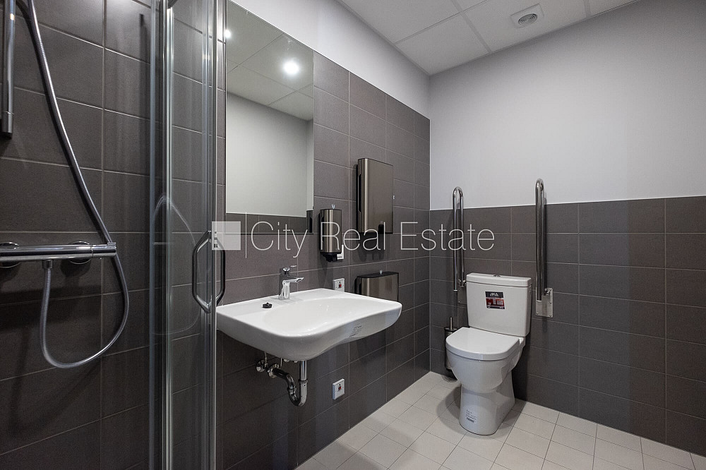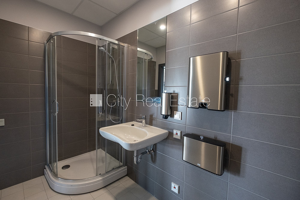 Jaunceltne, viena kvadrātmetra apsaimniekošanas maksa mēnesī 2 EUR, labiekārtota apzaļumota teritorija, teritorijas iebrauktuves vārti aprīkoti ar automatizētu atvēršanās un aizvēršanās sistēmu, vieta vairākām automašīnām, objektu apsargā fiziskā apsardze, ieeja no ielas, ir lifts, logi vērsti mājas abās pusēs, augstie griesti, divas ieejas, centrālā apkure, apkures skaitītāji, individuāla apkures sistēmas uzskaite, pilnā apdare, krāsotas sienas, jauna santehnika, lamināta parketa grīda, flīžu grīdas segums, koplietojamas labierīcības koridorā (WC, Duša), A klases biroju telpas, telpas caurstaigājamas, caurstaigājamas izolētas telpas, ir iespēja nomāt mazāku platību, ir iespēja nomāt lielāku telpu platību, signalizācija, diennakts apsardze, atbrīvots, projektā vēl pieejamas komercplatības 4 gab., nodots ekspluatācijā 2018 gadā, slēdzot nomas līgumu, Jums būs jāmaksā par pirmo un par pēdējo nomas mēnesi , CITY REAL ESTATE ID - 428185