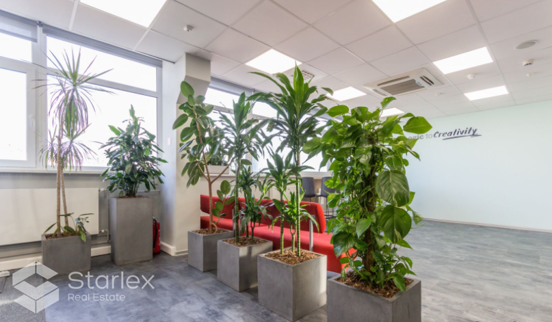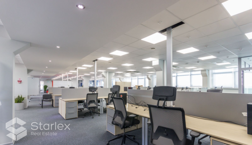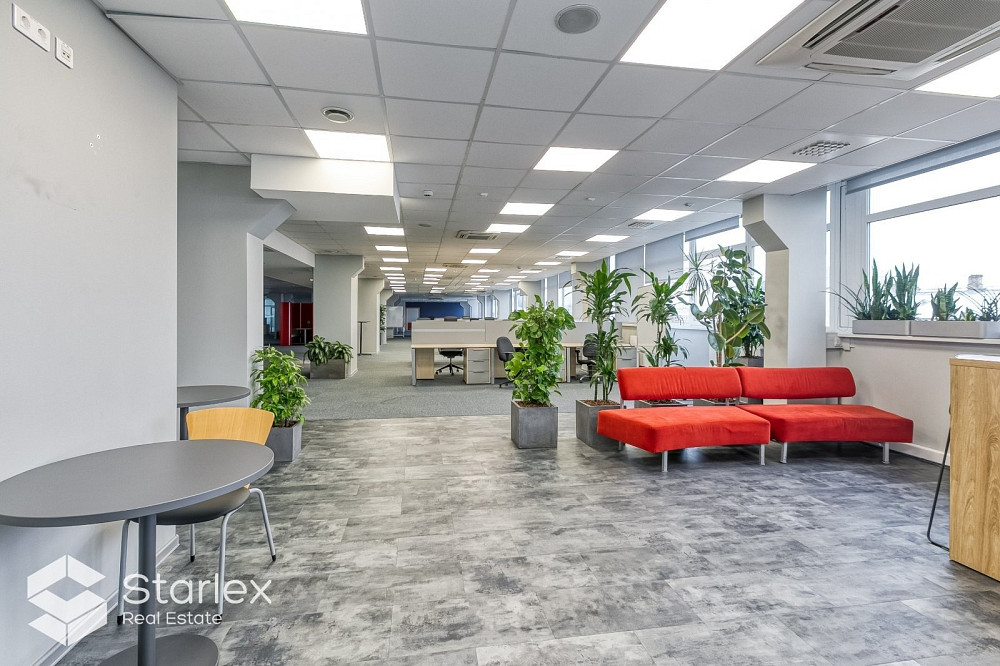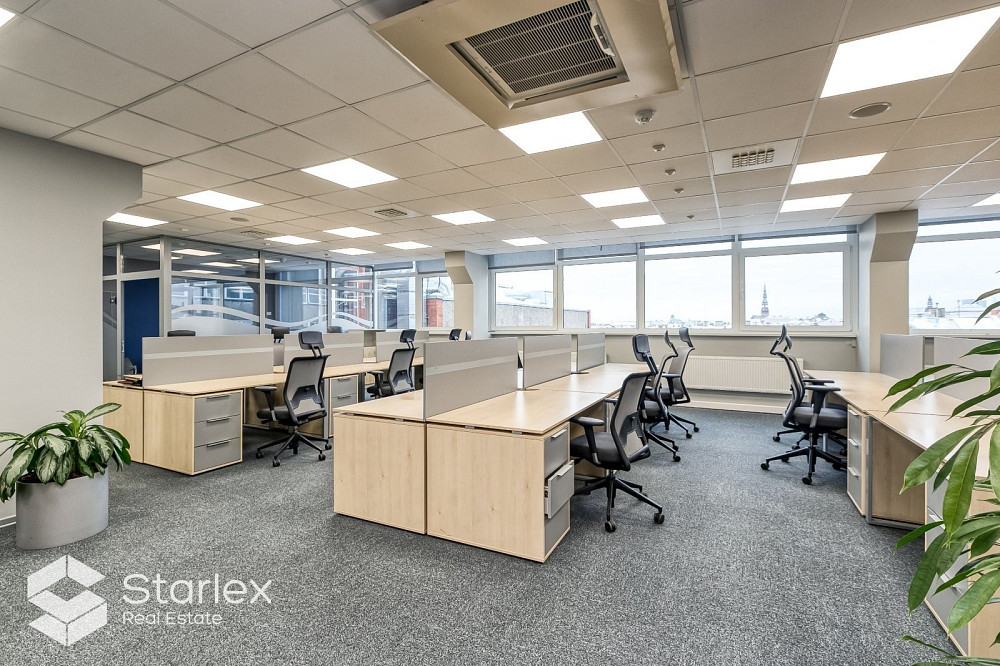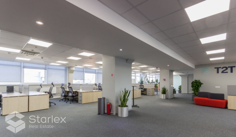 Atvērtā plānojuma birojs ar profesionālai IT kompānijai veidotām sakaru komunikācijām. Telpas ir teicami izgaismotas ar plašiem logiem, kas ir atverami.