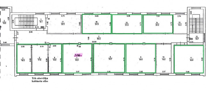 Trīs atsevišķu kabinetu ofiss! Trīs stāvu biroja ēkā Ganību dambī ir pieejami ofisi uz nomu. Ofisa ēkā ir tīra un sakopta teritorija, gaišas un siltas telpas. Ērtības: + Elektro auto uzlāde + Video novērošana + Tīra un sakopta teritorija + Piekļuve 24/7 + Klientiem 1h parkings bez maksas + Ēkā var nokļūt no ielas puses, kā arī no pagalma/parkinga puses + 1 parkings iekļautas nomas maksā + Papildus parkings 27 eur + pvn + Katrā stāvā 2 wc - Tuvumā benzīntanks - Sabiedriskais transports - Netālu Lidls Nomas maksa: 5.00 EUR/m + PVN. Atsevišķi maksājumi par apsaimniekošanu, koplietošanas ūdeni, apkuri un atkritumu izvešanu, elektrības patēriņš pēc individuāliem skaitītājiem katrā telpā. Papildus pakalpojumi nomniekiem: Uzkopšana 1,00 EUR/m