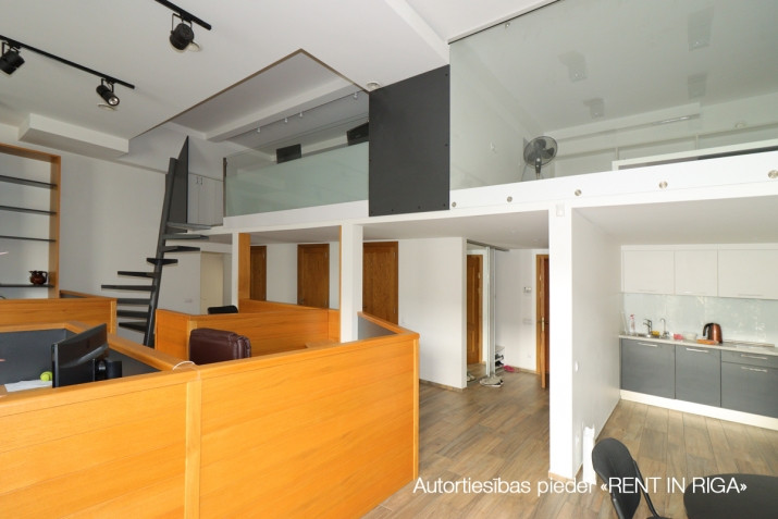 Saulains birojs ar balkonu un terasi un virtuvi. Plašas un funkcionālas telpas, kas lieliski piemērotas birojam, studijai, aģentūrai, IT uzņēmumam, salonam vai cita veida biznesam. + Platība sastāv no atvērtas telpas, virtuves un wc 1. līmenī un trīs kabinetiem 2. līmenī. + Balkons. + Ekskluzīva izeja uz lielu terasi (pieejama tikai šim birojam visā ēkā). + Ēkā lifts. + Videonovērošana. + Kondicionēšana. + Atsevišķa tualete un dušas telpa. Vairākas ieejas ēkā. Ērta atrašanās vieta blakus Circle K. Bezmaksas stāvvieta uz ielas, vai maksas stāvvieta pagalmā.