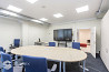 Apmācību telpās uzstādītas bīdāmās stikla starpsienas ērti mainīt telpas platību to samazinot vai palielinot.