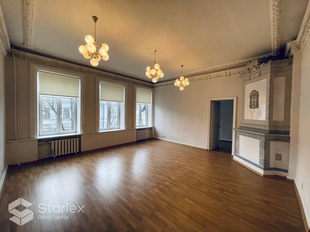 Plānojums: 3 darba telpas (2 izolētas), ar 2 nelieliem kaimiņu birojiem kopīgas labierīcības.Ērtības: pilsētas apkure, sanitārais mezgls, ugunsdrošības signalizācija, visas komunikācijas, lifts, dzīvā apsardze.
