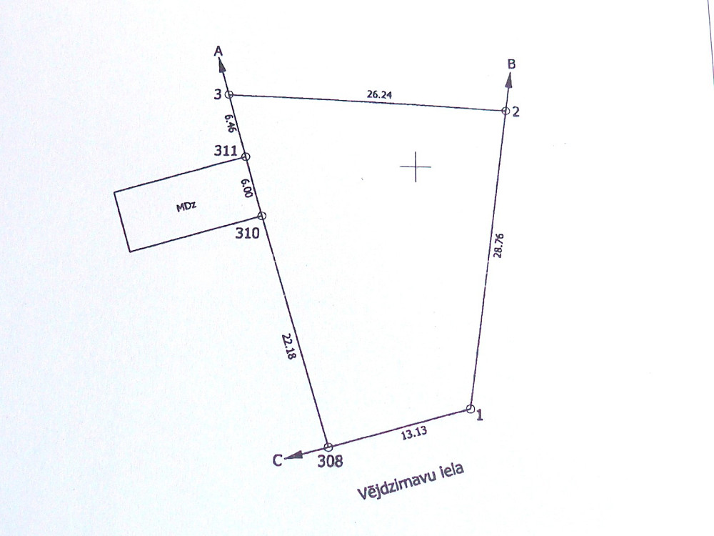 Iežogota teritorija ar metāla sētu, ieeja no ielas, atļauts būvēt divu stāvu ēku, ir 56 000 EUR