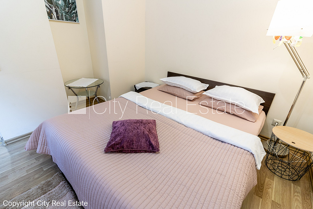 Šo dzīvokli izīrē pa diennaktīm (īstermiņa īre), īres cena sludinājumā norādīta par vienu diennakts īri. Jaunceltne, pagalma ēka, slēgts pagalms, ieeja no pagalma, ir lifts, kāpņu telpa pēc kapitālā remonta, logi vērsti uz pagalma pusi, studio tipa, virtuve apvienota ar istabu, centrālā apkure, pilnā apdare, plastikāta stikla pakešu logi, krāsotas sienas, jauna santehnika, lamināta parketa grīda, flīžu grīdas segums, sanitārais mezgls apvienots, vanna, tualete, iebūvēta virtuves iekārta, dīvāns, gulta , virtuves galds, krēsli, skapis, televizors, ledusskapis, elektriskā plīts, cepeškrāsns, tvaika nosūcējs, veļas mašīna, slēgta kāpņu telpa, izīrē ar visu bildēs redzamo aprīkojumu, minimālais īres termiņš 3 diennaktis, ar iespēju pagarināt līgumu, līdz trīs personām, cena diennaktī atkarīga no personu skaita, CITY REAL ESTATE ID - 512873