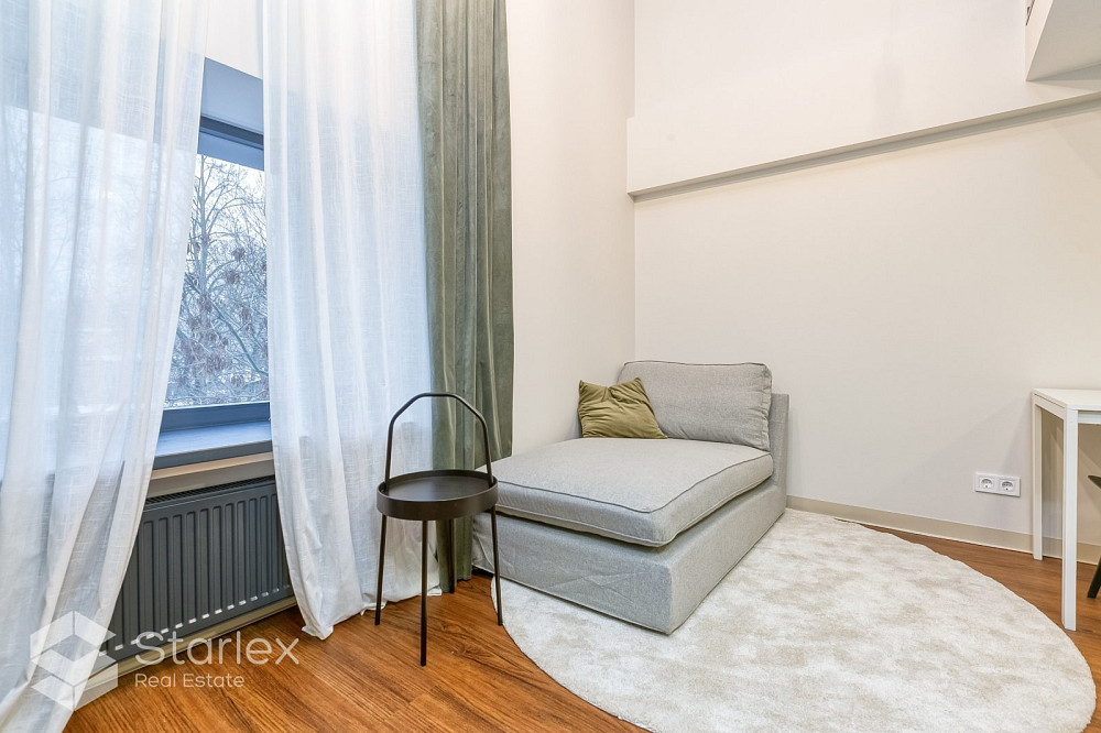 Visos dzīvokļos ir līdz centimetram pārdomāts plānojums. Uzstādīts jauns lifts. Dzīvokļi ar dizaina izraudzītu remontu un daļēji mēbelēti. Dažos dzīvokļos ir iebūvēta virtuve un skapji, kā arī aizkari un lampas. Dzīvokļi ir ar augstiem griestiem no 3 līdz 4,3 m. Ja klients vēlās, varam pilnībā mēbelēt dzīvokli. Savā ēkā piedāvājam kompleksa pakalpojumu dzīvokļa uzkopšanai, kā arī ēkā ir sava veļas mazgātuve.