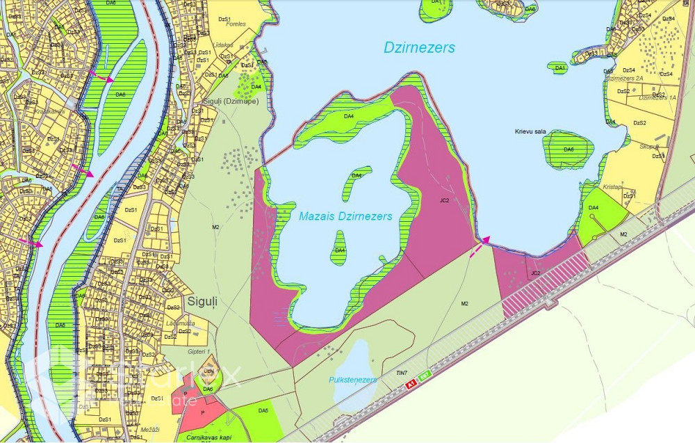 Pārdod 74 ha zemes īpašumu ar ezeru un priežu mežu. Īpašumā visa Mazā Dzirnezera 33 ha ūdenstilpne ar divām salām. Ezera dziļums 1-3 metri.Saskaņā ar Carnikavas novada teritorijas plānojumu zemes īpašumam noteiktais funkcionālais zonējums ir Jauktas centra apbūves teritorija (JC2) un mazākā platībā gar ezera krastu Dabas un apstādījumu teritorija (DA4). Abi funkcionālie zonējumi kopumā paver daudzveidīgas apbūves un aktīvās atpūtas pie ūdens iespējas. Minimālā jaunizveidojama zemes gabala platība - 1200 m2. Apbūves augstums - līdz 18 m JC2 teritorijā un līdz 12 m DA4 teritorijā. JC2 teritorijā atļautā izmantošana pie Mazā Dzirnezera īstenojama, izstrādājot teritorijai vienotu detālplānojumu.Īpašuma teritorijā ir trīs piebraucamie ceļi, galvenais no tiem - tiešs piebraucamais ceļš no autoceļa A1. Attālums līdz Rīgas centram - 28 km.