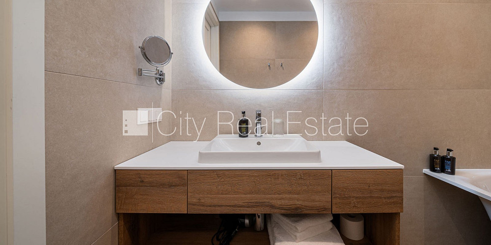 Новостройка, фасадный дом, зеленая территория, благоустроенная озеленённая территория, закрытая территория, въездные ворота оснащены автоматической подъёмной системой, подземная стоянка, вход с улицы, озеленённая территория со свежепосаженными расстениями, апартаменты люкс 104 м2, лифт, балкон, количество спален 2 шт., изолированные комнаты 2 шт., студио, кухня объединена с гостинной, радиаторы с терморегуляцией, счетчики отопления, индивидуальная система учета отопления, полная отделка , полы с подогревом в ванной, паркетный пол, кафельный пол, два санузла, ванна, встроенная кухня, встроенные стенные шкафы, угловой диван, двуспальная кровать, кухонный стол, стулья, кресла для отдыха, комод, кондиционер, телевизор, холодильник, посудомоечная машина, индукционная плита, духовка, вытяжка, кофеварка, стиральная машина, интернет, круглосуточное видеонаблюдение, круглосуточная охрана, возможна смена постельного белья, возможна уборка, сдаётся со всем видимым на фотографии оборудованием, освободится в мае, стратегически выгодное место, цена в летний сезон - 6500.00 EUR, CITY REAL ESTATE ID - 517149