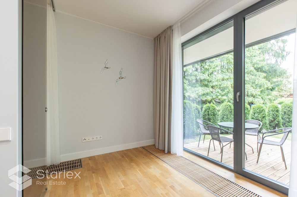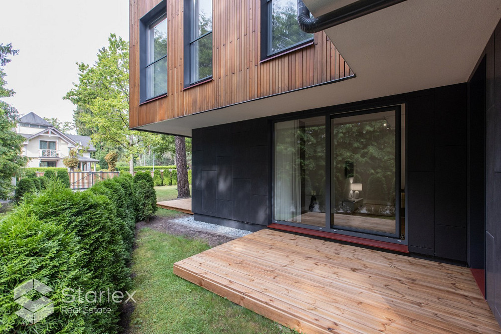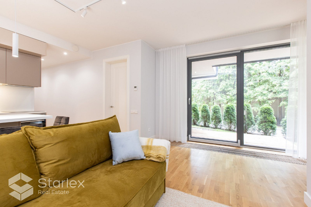 Предлагаем полностью оборудованные апартаменты в новом проекте на 1 этаже с просторной террасой. Квартира продается со всем оборудованием и мебелью, представленной на фотографиях.В стоимость входит одно парковочное место на территории комплекса. Отличный вариант для тех, кто ищет квартиру с компактной площадью, чтобы не переплачивать за лишнее пространство и выставлять счета. Апартаменты расположены в жилом комплексе в Пумпурисе, в тихом и красивом месте, всего в 5 минутах ходьбы от пляжа с белым песком. Жилой комплекс состоит из двух новых зданий, построенных таким образом, чтобы максимально вписаться в архитектуру Юрмалы. Управление: 1,21 евро/м2 (включая НДС), что включает в себя: коммунальное потребление электроэнергии (освещение территории, лестничной клетки), коммунальное отопление в зданиях, уборка фойе и полов здания, уборка территории, обслуживание лифта, видеонаблюдение и охрана территории. территория. Дополнительные платежи: Потребление электроэнергии - счетчики, газовое отопление - счетчики, вода и канализация - счетчики, вывоз мусора. Жилой комплекс состоит из двух новых зданий, построенных таким образом, чтобы максимально вписаться в архитектуру Юрмалы. Общая площадь зданий составляет 5826 м2, состоит из двух 3-х этажных домов (в каждом доме по 14 квартир) и двухэтажного гостевого дома. В каждом доме свой газовый котел, индивидуально регулируемая система отопления. Электричество, отопление, вентиляция, противопожарная защита, домофонные системы установлены в каждом отдельном жилом помещении. Основной элемент внешнего оформления зданий выполнен темными и светлыми оттенками ценных пород деревьев. Прекрасную звукоизоляцию, сохраняющую тишину и покой в комплексе, обеспечивают монолитный железобетонный каркас здания, бесшумный панорамный лифт. Все квартиры жилого комплекса имеют качественную внутреннюю отделку (паркет, мрамор, гранит, сантехника Villeroy & Boch) и полностью готовы для проживания. В комплексе предусмотрена стоянка для автомобилей, велопарковка, детские площадки. При покупке квартир бесплатно предоставляется одно парковочное место в закрытом дворе на территории дома. Инфраструктура района полностью развита (магазины, сервисные предприятия, гостиницы, рестораны, образовательные и медицинские учреждения), удобное транспортное сообщение между районами Юрмалы и городами (автобусы, маршрутки, ж/д станция Пумпури).