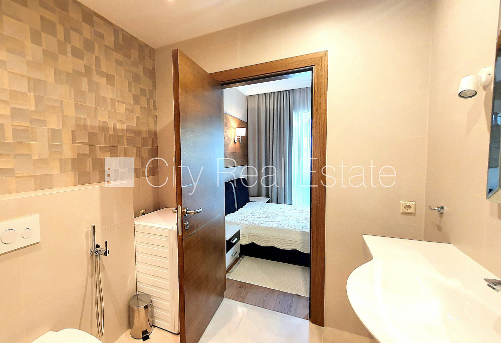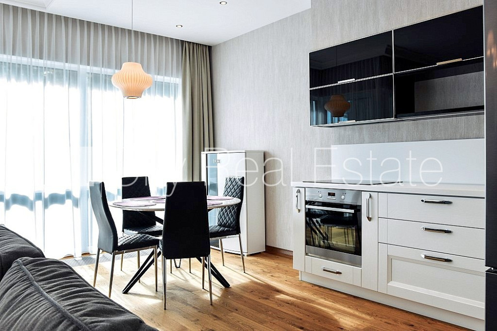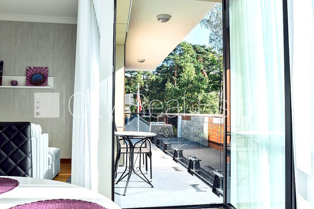 Земля в собственности, новостройка, благоустроенная озеленённая территория, подземная стоянка, во дворе детская игровая площадка, апартаменты люкс, лифт, окна выходят в обе стороны дома, широкий вид из окна, количество спален 2 шт., студио, кухня объединена с гостинной, высокие потолки, газовое отопление, счетчики отопления, индивидуальная система учета отопления, новая сантехника, паркетный пол, кафельный пол, два санузла, ванна, душевая кабина, встроенная кухня, встроенные стенные шкафы, холодильник, посудомоечная машина, электрическая плита, духовка, стиральная машина, oптический интернет, сигнализация, домофон, система входных пропусков, стратегически выгодное место, до моря 300 м, поможем оформить ипотечный кредит на приобретение этого имущества, поможем оформить Вид на жительство в Латвии, CITY REAL ESTATE ID - 508843