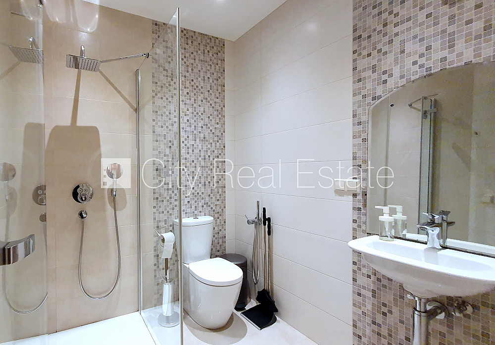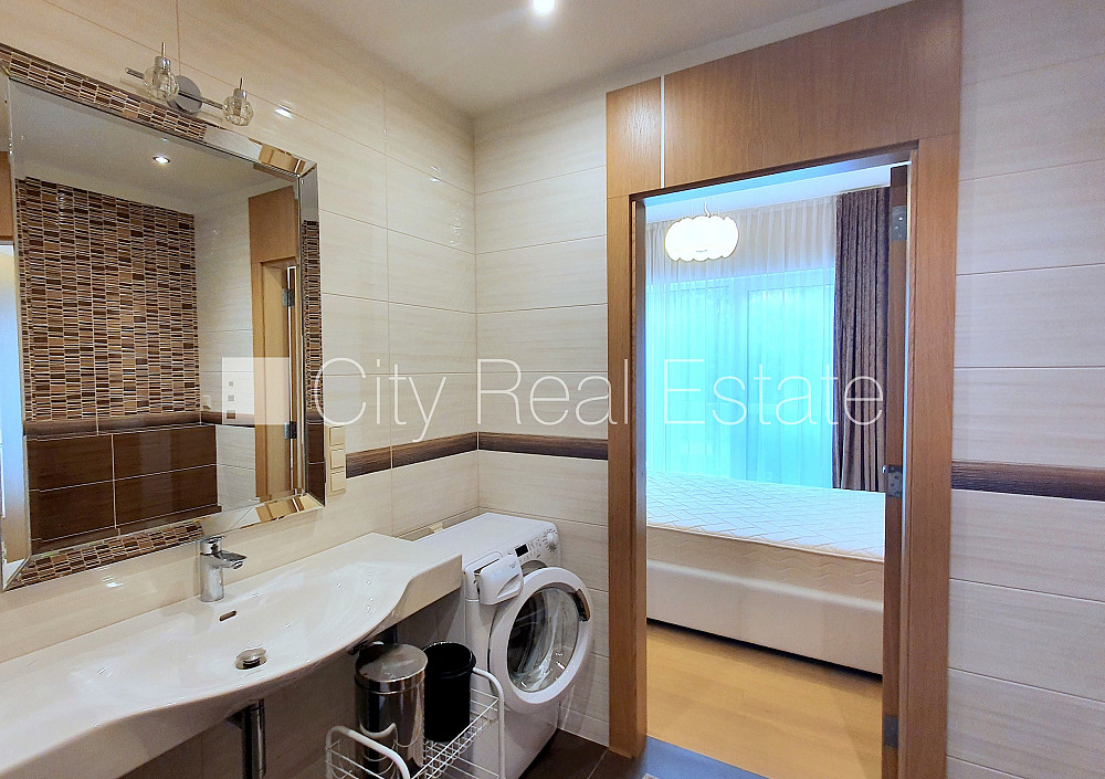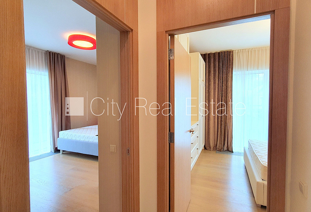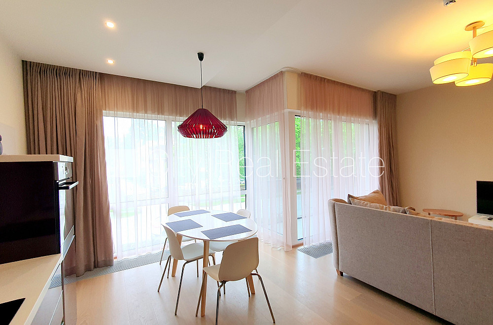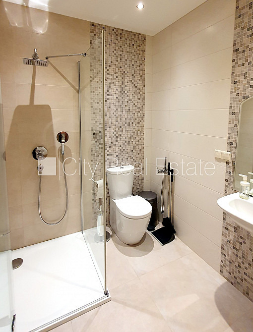 Земля в собственности, новостройка, количество квартир в здании 12 шт., благоустроенная озеленённая территория, въездные ворота оснащены автоматической подъёмной системой, подземная стоянка, во дворе детская игровая площадка, лифт, балкон, окна выходят в обе стороны дома, количество спален 2 шт., студио, кухня объединена с гостинной, счетчики отопления, индивидуальная система учета отопления, полы с подогревом в ванной, покрашенные стены, новая сантехника, встроенная светотехника, паркетный пол, кафельный пол, два санузла, ванна, душевая кабина, встроенная кухня, встроенные стенные шкафы, двуспальная кровать, четырёхместное кресло для отдыха, кондиционер, холодильник, посудомоечная машина, электрическая плита, духовка, стиральная машина, стратегически выгодное место, до магазина 150 м, до моря 300 м, поможем оформить Вид на жительство в Латвии, CITY REAL ESTATE ID - 510053