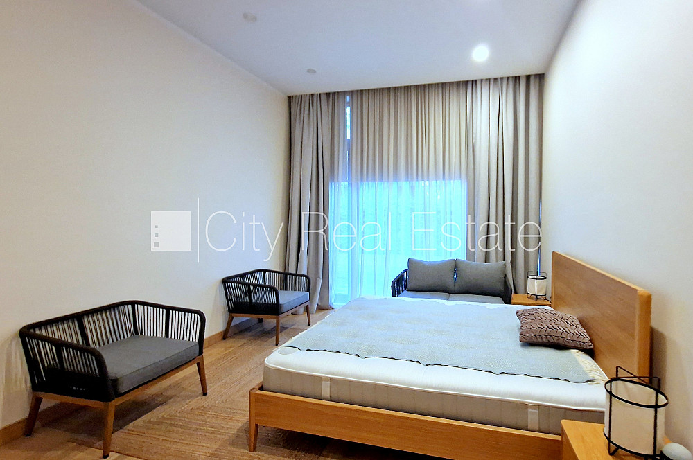 Частный дом, новостройка, дом во дворе, межэтажные железобетонные перекрытия, монолитные бетонные стены, благоустроенная озеленённая территория 950 м2, закрытая территория, въездные ворота оснащены автоматической подъёмной системой, места для нескольких машин, вход со двора, апартаменты люкс 190 м2, первый этаж с садом, две терассы 50 м2, сауна, окна выходят в обе стороны дома, система вентиляции воздуха, система кондиционирования воздуха, количество спален 3 шт., студио, кухня объединена с гостинной 56 м2, газовое отопление, автоматическая система отопления, полная отделка , полы с подогревом, большие витрины, алюминевые стекло-пакетные окна, два санузла, ванна, душевая кабина, встроенная кухня, встроенные стенные шкафы, телевизор, холодильник, посудомоечная машина, электрическая плита, духовка, стиральная машина, oптический интернет, сигнализация, стратегически выгодное место, до моря 150 м, поможем оформить ипотечный кредит на приобретение этого имущества, комиссия за посреднические услуги не взымается, поможем оформить Вид на жительство в Латвии, CITY REAL ESTATE ID - 424192