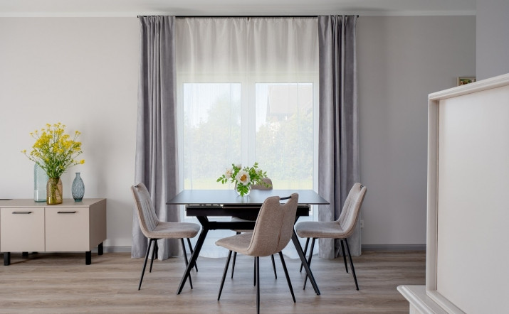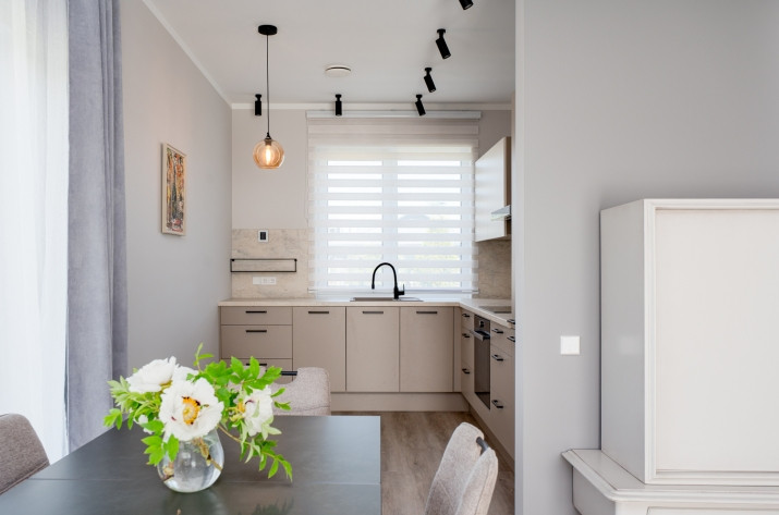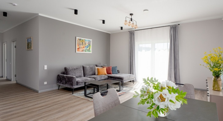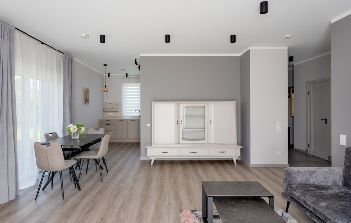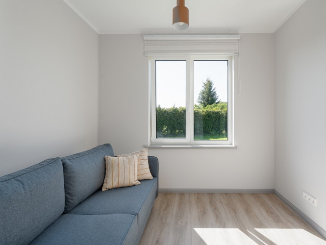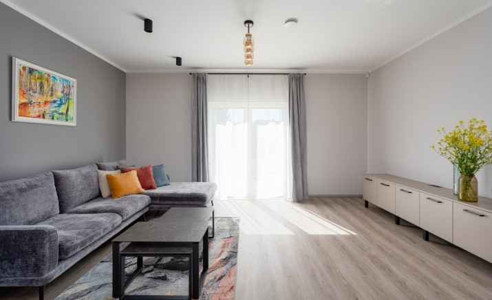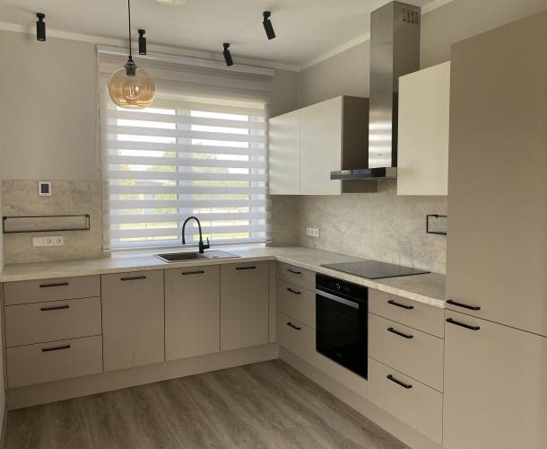 Сдается в долгосрочную аренду абсолютно новый и готовый к комфортному проживанию частный дом в Кекаве. Предлагается в аренду одноэтажный частный дом, построенный в 2025 году, класса энергоэффективности A. Дом находится в Кекаве, всего в 25 минутах езды от центра Риги или аэропорта. Общая площадь дома 155 м, участок 1100 м. Дом выполнен в скандинавском стиле, с интерьером в серых и природных тонах. Полностью меблирован современной и качественной мебелью, оборудован всей необходимой техникой и сантехникой для комфортного проживания. Планировка: Просторный холл, Светлая и стильно оформленная гостиная (~50 м) с уютной атмосферой и двумя выходами на террасу площадью 43 м, Удобная кухня с встроенной техникой (плита, духовой шкаф, вытяжка, холодильник, посудомоечная машина), Три спальни (две полностью меблированы), Светлая ванная комната с душевой кабиной, Отдельный гостевой санузел, Техническое помещение с тепловым насосом "Viessmann" и стиральной машиной. Дополнительно: Тёплые полы с плиткой и виниловым покрытием, Система рекуперации воздуха, Сигнализация, Центральная канализация и городской водопровод. Участок благоустроен огороженная территория с автоматическими воротами, вымощенный двор с парковкой для нескольких автомобилей, озеленённая и ухоженная территория. Дом расположен на тихой, мало заселённой улице с удобным доступом ко всей необходимой инфраструктуре: магазины, кафе, школы, детские сады, медицинские учреждения, общественный транспорт. Поблизости река Даугава и лес. Домашние животные в этом доме не приветствуются.