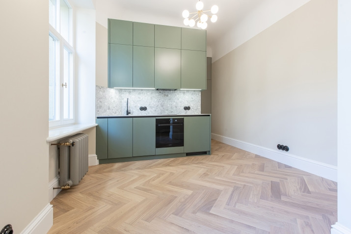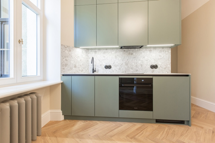 Эксклюзивная полностью обновлённая студия у Верманского сада Квартира (4 этаж): - Открытая планировка с выделенной спальней - Вид во внутренний, тихий двор - Индивидуальная кухня с встроенной техникой - Встроенные шкафы, стиральная машина - Вентиляция с рекуперацией и контролем CO - Тёплый пол, каменная плитка, дизайнерский свет - Паркет из дуба, массивные двери - Восстановленные радиаторы, лепнина, розетки - Новая электрика и сантехника - Эко-изоляция, деревянные окна с двойным стеклопакетом - Автономное газовое отопление Дом и район: + Историческое здание (1895) + 80 м до Верманского сада + Удобный транспорт, Центральный вокзал, магазины, рестораны Дополнительно: - Без мебели; можно меблировать за доп. плату - Доступна уборка Условия: + Коммунальные по счётчикам / площади + Минимальный срок 12 месяцев + Депозит 1 месяц + страхование гражданской ответственности