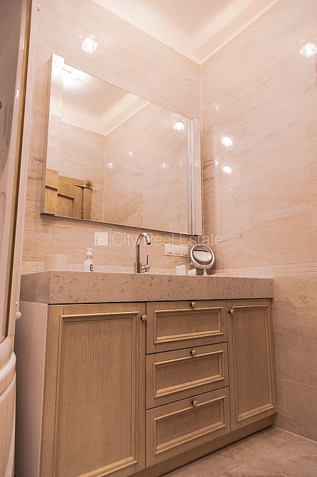 Фасадный дом, реновированный дом, поменянное покрытие крыши, благоустроенная озеленённая территория, подъездная дорога покрыта брущаткoй, закрытый двор, въездные ворота оснащены автоматической подъёмной системой, бесплатная стоянка во дворе, охраняемая территория, объект охраняет физическая охрана, апартаменты люкс 598 м2, лифт, лестничная клетка после капитального ремонта, балкон, лоджия, финская баня, окна выходят в обе стороны дома, широкий вид из окна, количество спален 5 шт., трёхэтажный, гостиная, кухня, помещение для отдыха, гардеробная, холл, kабинет, высота потолков 3-6 м, высокие потолки, два входа, газовое отопление, автоматическая система отопления, полная отделка , три уровня, деревянные стекло-пакетные окна, наклеенные обои, паркетный пол, кафельный пол, новая электроинсталяция, kоличество ванных комнат 4 шт., душевая кабина, ванна джакузи, биде, антикварная мебель, встроенная кухня, встроенные стенные шкафы, угловой диван, гостинный стол, стулья, кресла для отдыха, трёхместное кресло для отдыха, кондиционер, телевизор, холодильник, посудомоечная машина, электрическая плита, стиральная машина, сушилка белья, oптический интернет, сигнализация, дымовой детектор , видео домофон, круглосуточная охрана, система входных пропусков, до парка 70 м, стратегически выгодное место, до Старой Риги 330 м, комиссия за посреднические услуги не взымается, CITY REAL ESTATE ID - 506954