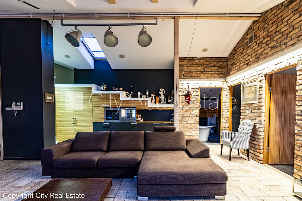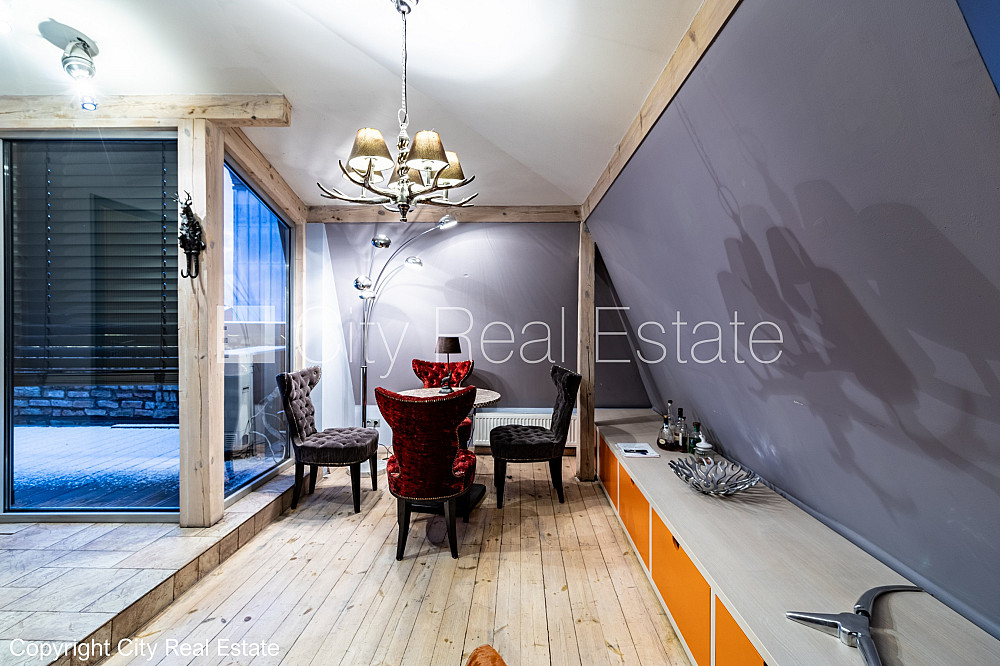 Фасадный дом, реновированный дом, вход с улицы, лифт, терасса, окна выходят в обе стороны дома, широкий вид из окна, изолированные комнаты 3 шт., студио, кухня объединена с гостинной, гардеробная, высокие потолки, камин, газовое отопление, перепланированная, полы с подогревом в ванной, деревянные стекло-пакетные окна, мансардные окна, металлическая дверь, покрашенные стены, новая сантехника, встроенная светотехника, паркетный пол, кафельный пол, множество санузлов, ванна, биде, встроенная кухня, встроенные стенные шкафы, диван, угловой диван, двуспальная кровать, холодильник, посудомоечная машина, электрическая плита, духовка, вытяжка, микроволновая печь, стиральная машина, интернет, лестничная клетка на кодовом замке, сдаётся со всем видимым на фотографии оборудованием, каминные принадлежности , настенные лампы, освобождена, стратегически выгодное место, CITY REAL ESTATE ID - 517006