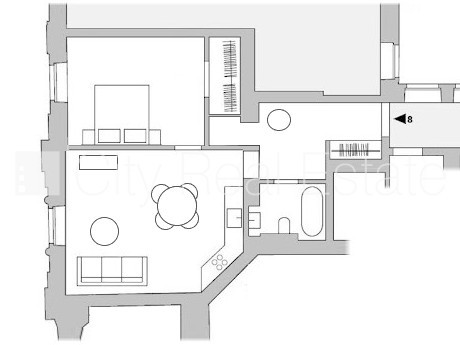 Фасадный дом, реновированный дом, закрытый двор, вход с улицы и со двора, лифт, лестничная клетка после капитального ремонта, окна выходят во двор, изолированные комнаты 1 шт., студио, кухня объединена с гостинной, гардеробная, высокие потолки, радиаторы с терморегуляцией, центральное отопление, полы с подогревом в ванной, пластиковые стекло-пакетные окна, паркетный пол, кафельный пол, совмещённый санузел, душевая кабина, встроенная кухня, встроенные стенные шкафы, холодильник, посудомоечная машина, индукционная плита, духовка, вытяжка, домофон, лестничная клетка на кодовом замке, сдаётся со всем видимым на фотографии оборудованием, освобождена, стратегически выгодное место, CITY REAL ESTATE ID - 516746