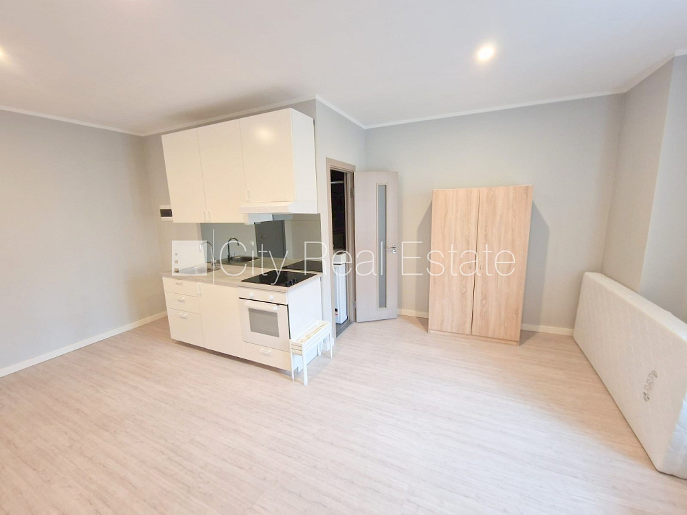 Фасадный дом, реновированный дом, закрытый двор, вход с улицы, лестничная клетка после косметического ремонта, окна выходят на улицу, студио, кухня объединена с комнатой, высокие потолки, центральное отопление, деревянные стекло-пакетные окна, покрашенные стены, новая сантехника, ламинатный пол, совмещённый санузел, душевая кабина, туалет, встроенная кухня, кухонный стол, стулья, шкаф, холодильник, электрическая плита, духовка, вытяжка, стиральная машина, закрытая лестничная клетка, сдаётся со всем видимым на фотографии оборудованием, освобождена, заключая договор аренды Вам нужно будет оплатить первый месяц аренды, а также внести залоговый депозит, за данный объект комиссия за посреднические услуги взымается в размере половины месячной арендной платы данного объекта, CITY REAL ESTATE ID - 517273