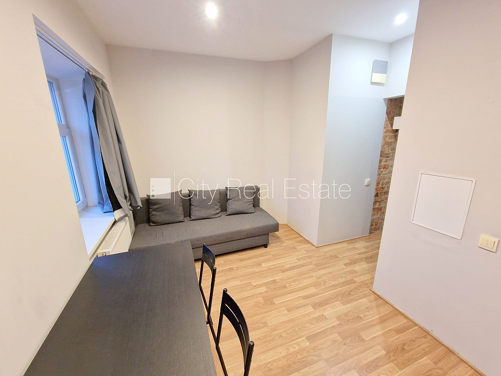 Фасадный дом, реновированный дом, закрытый двор, вход с улицы, лестничная клетка после косметического ремонта, окна выходят во двор, студио, кухня объединена с комнатой, высокие потолки, центральное отопление, бойлер для горячей воды, полная отделка , пластиковые стекло-пакетные окна, наклеенные обои, покрашенные стены, новая сантехника, ламинатный пол, кафельный пол, совмещённый санузел, душевая кабина, туалет, встроенная кухня, раздвижной угловой диван, кухонный стол, стулья, холодильник, электрическая плита, духовка, вытяжка, стиральная машина, закрытая лестничная клетка, сдаётся со всем видимым на фотографии оборудованием, освобождена, в проекте ещё доступны квартиры 2 шт., заключая договор аренды Вам нужно будет оплатить первый месяц аренды, а также внести залоговый депозит, за данный объект комиссия за посреднические услуги взымается в размере половины месячной арендной платы данного объекта, CITY REAL ESTATE ID - 427275