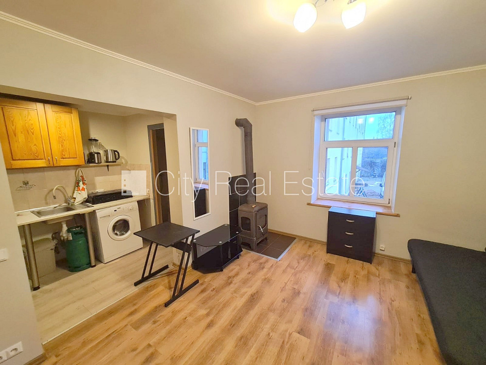 Фасадный дом, вход с улицы, окна выходят во двор, изолированная комната 18 м2, высокие потолки, отопление дровами, бойлер для горячей воды, пластиковые стекло-пакетные окна, покрашенные стены, новая сантехника, ламинатный пол, кафельный пол, совмещённый санузел, душевая кабина, туалет, встроенная кухня, диван, шкаф, холодильник, газовая плита, стиральная машина, закрытая лестничная клетка, сдаётся со всем видимым на фотографии оборудованием, освобождена, заключая договор аренды Вам нужно будет оплатить первый месяц аренды, а также внести залоговый депозит в размере месячной арендной платы., за данный объект комиссия за посреднические услуги взымается в размере половины месячной арендной платы данного объекта, CITY REAL ESTATE ID - 427242
