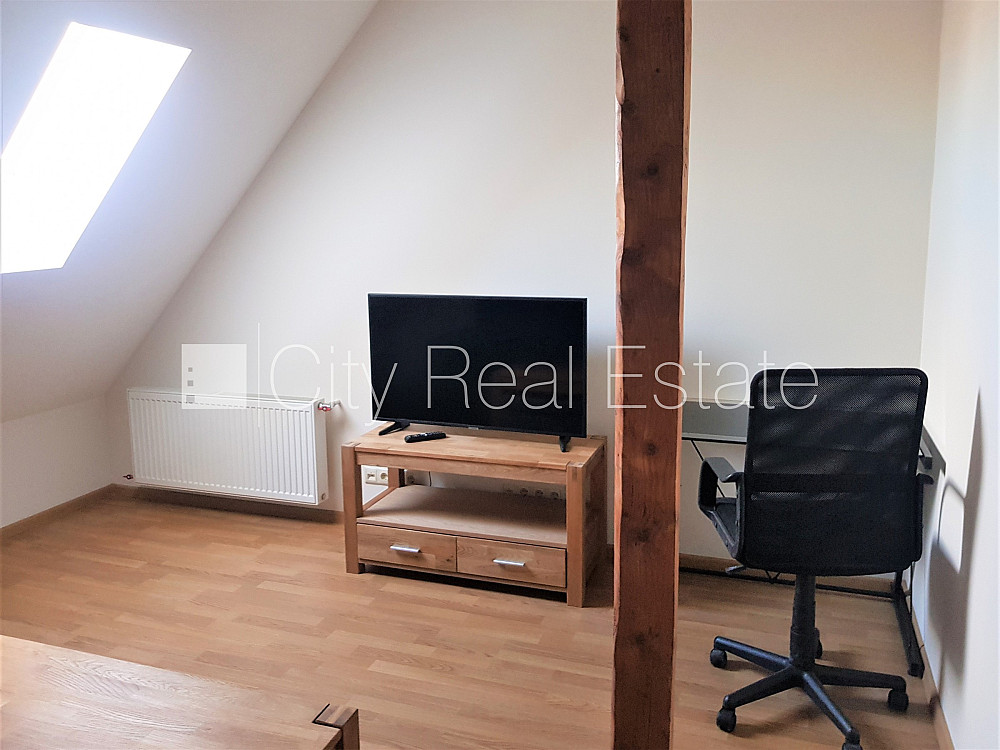 Фасадный дом, закрытый двор, мансарда, изолированная комната 2 шт., центральное отопление, пластиковые стекло-пакетные окна, новая сантехника, совмещённый санузел, душевая кабина, встроенная кухня, раздвижной угловой диван, двуспальная кровать, кухонный стол, журнальный столик, кухонные стулья, шкаф для одежды, холодильник, электрическая плита, духовка, вытяжка, стиральная машина, CITY REAL ESTATE ID - 426489