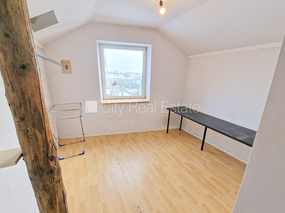 Фасадный дом, закрытый двор, вход с улицы, мансарда, лестничная клетка после косметического ремонта, окна выходят на улицу, количество спален 2 шт., изолированные комнаты 2 шт., студио, кухня объединена с комнатой, высокие потолки, отопление дровами, электрическое отопление, бойлер для горячей воды, пластиковые стекло-пакетные окна, мансардные окна, металлическая дверь, наклеенные обои, ламинатный пол, кафельный пол, совмещённый санузел, ванна, туалет, встроенная кухня, холодильник, электрическая плита, стиральная машина, закрытая лестничная клетка, освобождена, заключая договор аренды Вам нужно будет оплатить первый месяц аренды, а также внести залоговый депозит в размере месячной арендной платы., за данный объект комиссия за посреднические услуги взымается в размере половины месячной арендной платы данного объекта, CITY REAL ESTATE ID - 431476