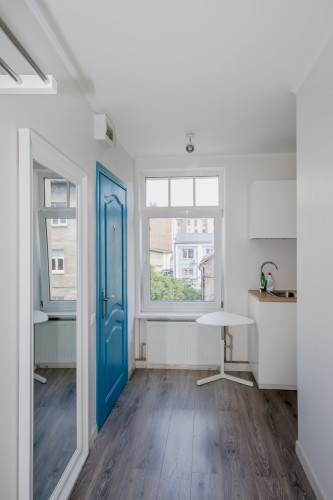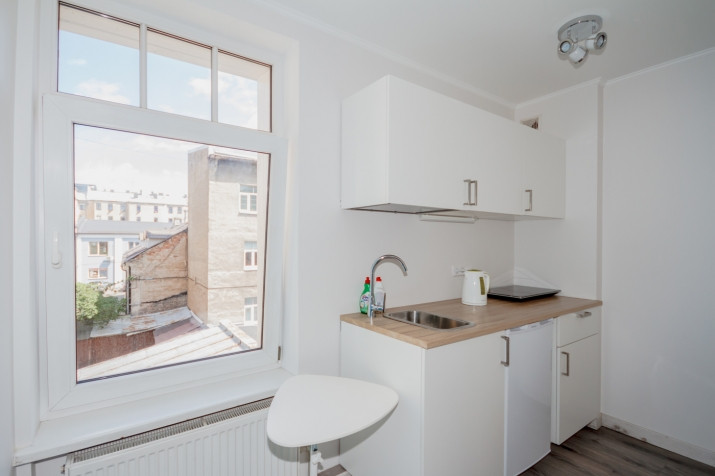 Fully equipped 1-room apartment on Aleksandra Čaka street 126A, opposite the Centra sports quarter. The amount of additional payments is 90 EUR/month, which includes heating, cold and hot water and management fees. In addition, you have to pay for the consumed electricity according to an individual meter. TET internet is included in the rent. There is a laundry room on the 1st floor of the building. The building and apartments are equipped with smoke detectors. Video surveillance in the common areas of the building. Rent: 320 €/month + utility payments 90 €/month (additional payment for electricity); Deposit payment €410; Commission fee in the amount of 50% of 1 month's rent.