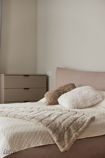 + Dzīvoklis ir pilnībā mēbelēts, t.sk. ar iebūvētu virtuvi, divguļamu gultu, vairākiem ietilpīgiem iebūvētajiem skapjiem, rakstāmgaldu, ēdamgaldu un citām fotogrāfijās redzamajām mēbelēm.