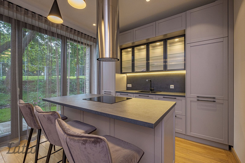 Izīrē miera oāzi - daļēji mēbelētu trīsstāvu rindu mājas vidējo sekciju jaunā mājā, zaļā apkārtnē Torņakalnā. Plaša dzīvojamā istaba ar elegantu virtuves un ēdamzonu. Iebūvētā virtuves iekārta ar kvalitatīvu sadzīves tehniku. Izeja uz nelielu terasi ar skatu uz baznīcu, kur baudīt rīta un pusdienas laika sauli.