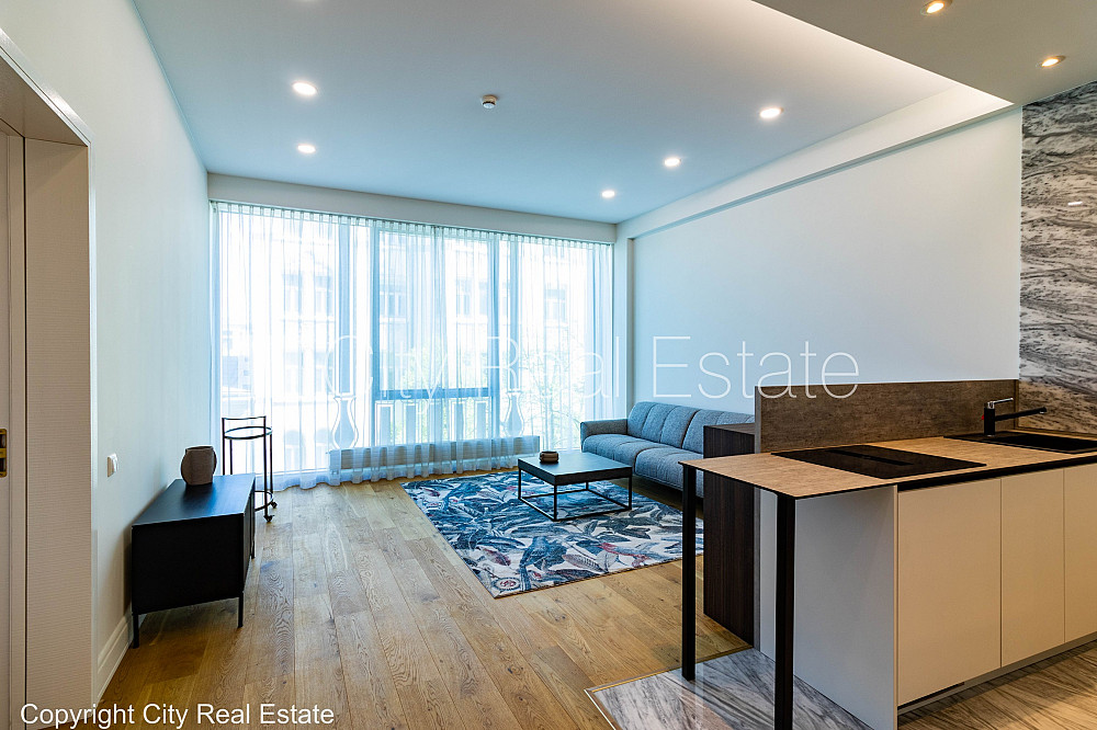 Новостройка, фасадный дом, вход со двора, лифт, лестничная клетка после капитального ремонта, балкон 1,90 м2, окна выходят на улицу, количество спален 2 шт., изолированные комнаты, студио, кухня объединена с гостинной, одна проходная комната, гардеробная, центральное отопление, счетчики отопления, индивидуальная система учета отопления, полы с подогревом в ванной, деревянные стекло-пакетные окна, паркетный пол, мраморный пол, kоличество ванных комнат 1 шт., совмещённый санузел, ванна, душевая кабина, туалет, на 1 год, возможно продлить договор, освобождена, стратегически выгодное место, CITY REAL ESTATE ID - 515176