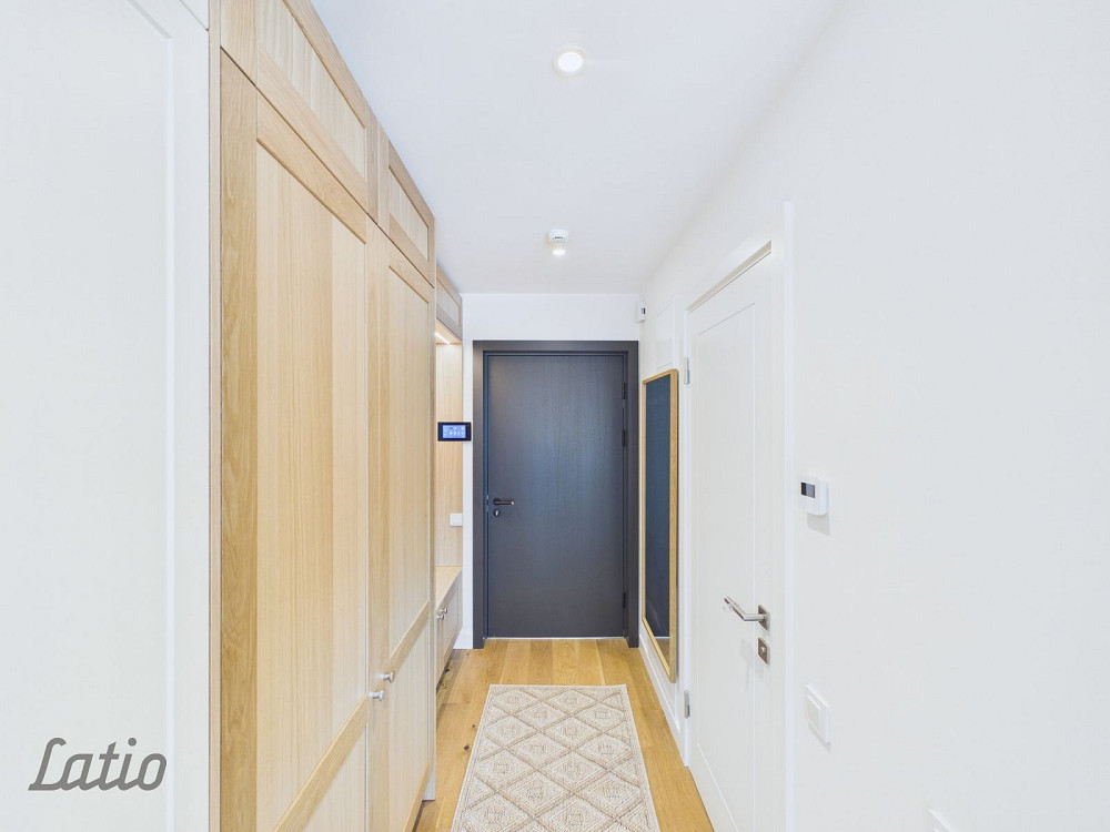 Vannas istaba ir moderna un praktiska: plaša dušas zona, iebūvēti plaukti un veļasmašīna. Priekštelpā iebūvēts skapis un vieta mantu glabāšanai.