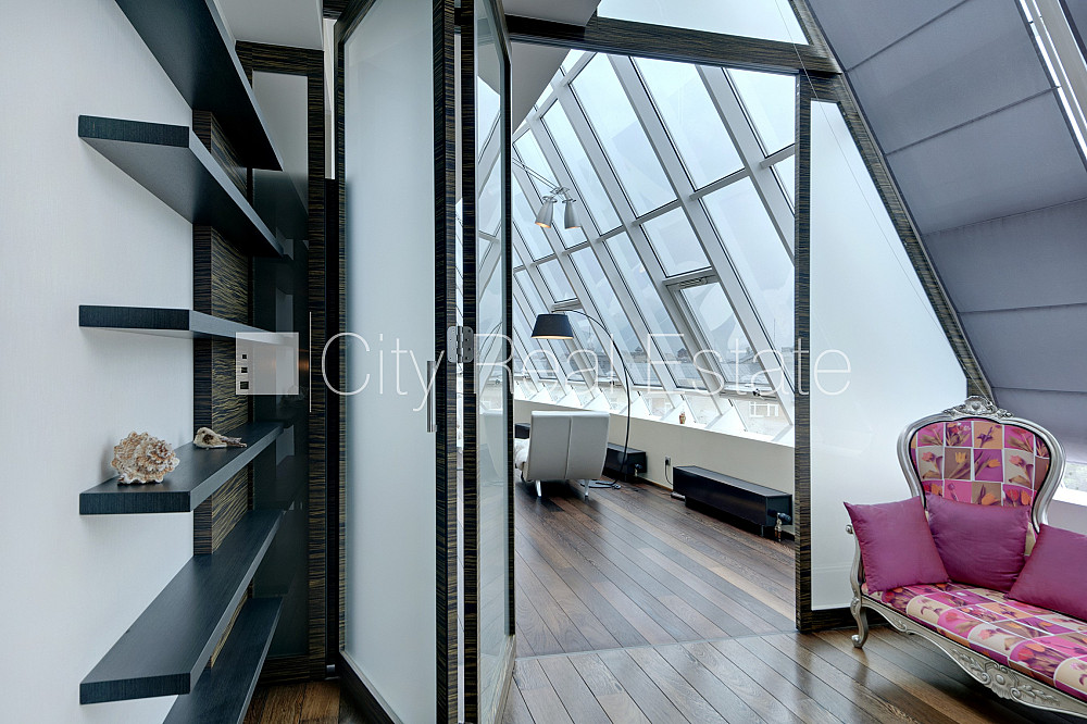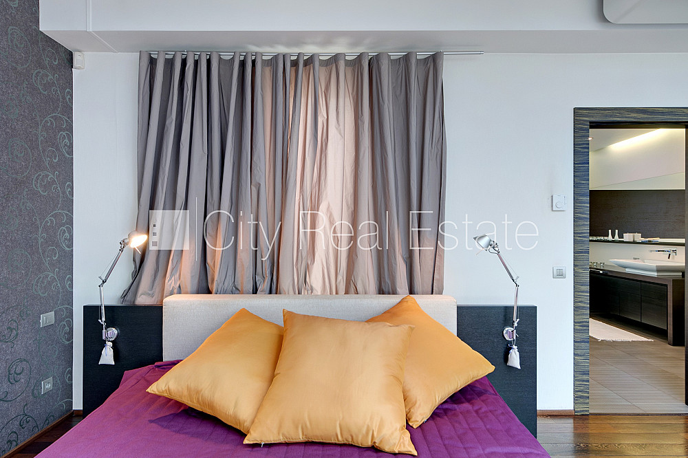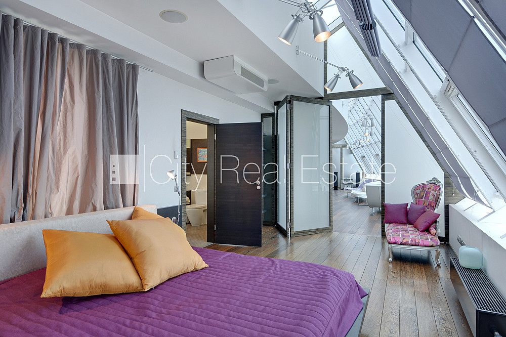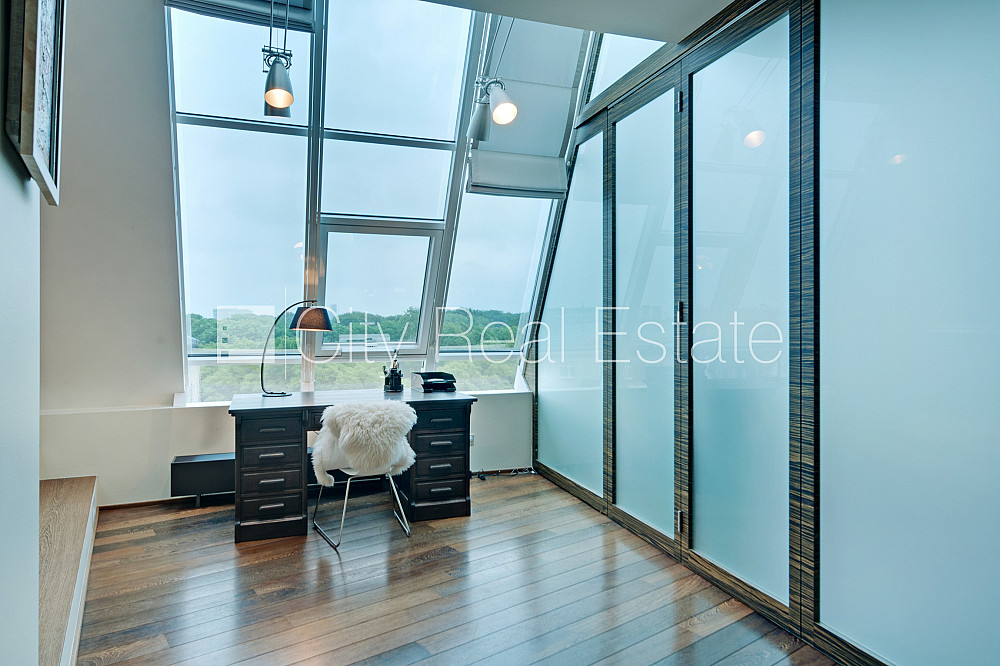 Проект - Centra Nams (Центра Намс), благоустроенная озеленённая территория, подземная стоянка, апартаменты люкс, лифт, верхний этаж с терассой, терасса на крыше, окна выходят на сторону парка, широкий вид из окна, количество спален 2 шт., двухэтажный, одна проходная комната, гардеробная, подсобка, прачечная, высокие потолки, радиаторы с терморегуляцией, центральное отопление, два уровня, полы с подогревом, большие витрины, мансардные окна, двойная металическая дверь, покрытие пола из дуба, паркетный пол, кафельный пол, два санузла, ванна, душевая кабина, встроенная кухня, встроенные стенные шкафы, диван, двуспальная кровать, стол, письменный стол, стулья, кресла для отдыха, зеркало, кондиционер, телевизор, холодильник, холодильная камера, посудомоечная машина, электрическая плита, духовка, микроволновая печь, стиральная машина, сушилка белья, oптический интернет, сигнализация, закрытая лестничная клетка, до парка 150 м, стратегически выгодное место, до Старой Риги 400 м, без животных, о цене возможно договоритсья, CITY REAL ESTATE ID - 424537