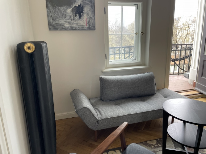 Сдается 2-комнатная квартира c балконом в престижном "Доме Библиотеки". Здание построено в 1910 году в стиле неоклассицизма, архитектор Эрнест Поле. Здание было полностью отреставрировано в 2020 году. В квартире: спальня, гостиная совмещенная с современной кухней, ванная комната. Одной из привилегий квартиры является вид на Верманский парк прямо из окон квартиры. В квартире свежий ремонт, новая мебель. Расположена на 5 этаже, есть лифт. Индивидуальные счетчики воды и тепла с возможностью регулирования мощности отопления. Есть стиральная машина, посудомоечная машина, холодильник.