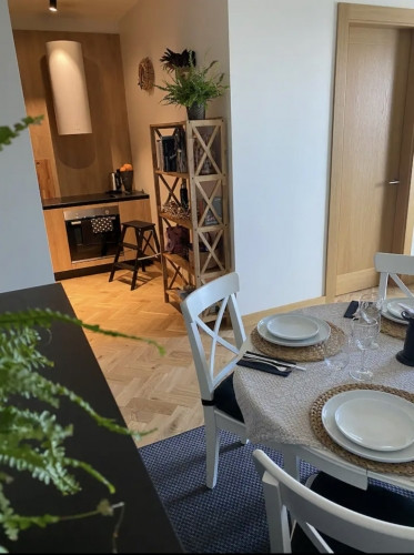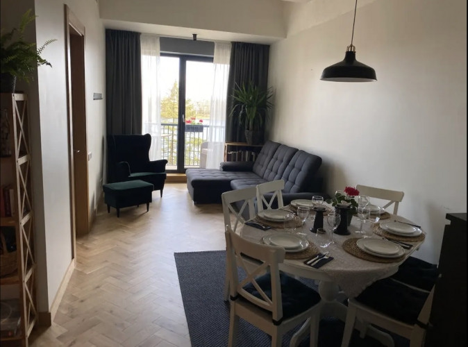 Сдается 2 комнатная квартира в новом проекте "Promenade", все абсолютно новое. Встроенные 2 больших шкафа. Просторная гостиная с балконом. Отдельная зона немецкой немецкой кухни Leich стоимостью 15000 евро (техника BOSCH) Отдельная спальня. В ванной комнате ванна, стиральная машина, пол с подогревом. Система рекуперации. Паркет из массива дерева. Дубовые подоконники. JUNG выключатели. Intercom. Высокие потолки. Лифт. Автомобильная стоянка за дополнительную плату 50Eur / мес. Низкие коммунальные платежи - около 50 евро летом, 80 евро зимой. В комплексе есть ресторан, кофе, рядом с тренажерным залом. Отличная инфраструктура и общественный транспорт. 5 мин.пешком до Национальной библиотеки Латвии, 15 мин ходьбы до Старой Риги, где различные рестораны, кафе и развлекательные заведения. До аэропорта 15 мин. поездки.