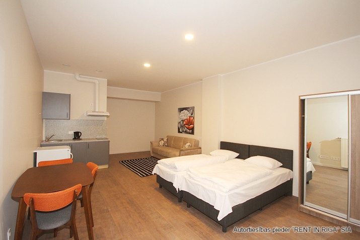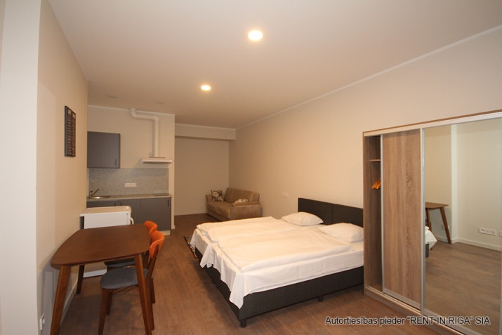 Сдается как на длительный срок, так и на месяц - 1 комнатная меблированная квартира-студия. B квартире и во всём здании произведён капитальный ремонт. В квартире встроенная кухня со всей необходимой бытовой техникой, душевая кабина, шкаф для одежды, постельное бельё. Есть возможность аренды автостоянки 25 Eur/ мес. Само здание находится за воротами, на охраняемой территории. Удобное транспортное сообщение, 7 и 9 трамвай, остановка Маза Кална, неподалёку Т/Ц Молс. Платежи при заключении договора: депозит в размере трехмесячной арендной платы + одноразовая комиссия в размере 1/2 арендной платы за месяц. Счет за аренду и комунальнывыставляется в конце каждого прожитого месяца. Квартиру также можно снимать на короткий срок (по месяцам) с фиксированной ежемесячной платой 450 евро, в т.ч. коммунальные услуги, депозит 100 eur. Комиссия агентства (разовый платеж) 100 евро.