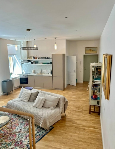 тильная, полностью оборудованная квартира в самом центре Риги, напротив Нового Рижского театра. Индивидуальные счетчики отопления. Гостиная совмещена с кухней. Изолированная спальня (низкие потолки). Кабинет с рабочим столом (низкие потолки). Санузел с душевой кабиной и подогреваемым полом. Окна выходят на улицу Лачплеша. Квартира меблирована и полностью оснащена, включая телевизор. Рядом множество магазинов, кафе и парков. Сад Вермана 410 м, Старый город 950 м, Центральный железнодорожный вокзал 1 км. Квартира сдаётся в аренду до мая 2026 года. Если у вас есть вопросы смело пишите или звоните.