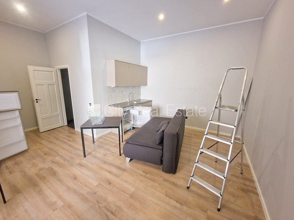 Здание во дворе, реновированный дом, закрытый двор, вход с улицы и со двора, окна выходят во двор, количество спален 1 шт., одна изолированная комната, студио, кухня объединена с комнатой, высокие потолки, центральное отопление, пластиковые стекло-пакетные окна, покрашенные стены, новая сантехника, ламинатный пол, совмещённый санузел, душевая кабина, туалет, встроенная кухня, диван, кровать, кухонный стол, стулья, шкаф, холодильник, электрическая плита, духовка, вытяжка, стиральная машина, закрытая лестничная клетка, сдаётся со всем видимым на фотографии оборудованием, на 1 год, на 2 года, возможно продлить договор, освобождена, фото сделано во время ремонта, заключая договор аренды Вам нужно будет оплатить первый месяц аренды, а также внести залоговый депозит, за данный объект комиссия за посреднические услуги взымается в размере половины месячной арендной платы данного объекта, CITY REAL ESTATE ID - 518038