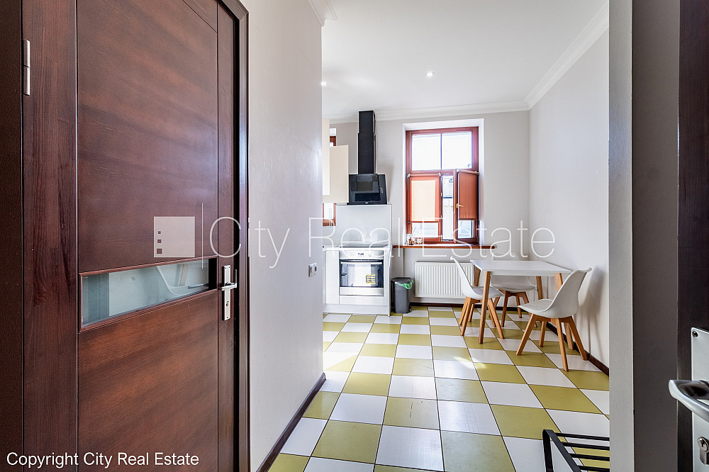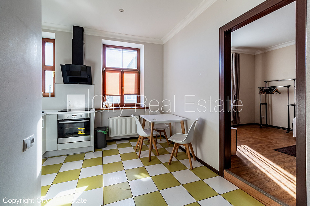 Здание во дворе, закрытый двор, территория обнесена забором, место для машины, лестничная клетка после косметического ремонта, широкий вид из окна, одна изолированная комната, кухня, высокие потолки, центральное отопление, деревянные стекло-пакетные окна, новая сантехника, паркетный пол, кафельный пол, совмещённый санузел, ванна, встроенная кухня, встроенные стенные шкафы, диван, комод, холодильник, духовка, вытяжка, стиральная машина, освобождена, стратегически выгодное место, до остановки трамвая 100 м, до остановки автобуса 70 м, заключая договор аренды Вам нужно будет оплатить первый месяц аренды, а также внести залоговый депозит, CITY REAL ESTATE ID - 517315