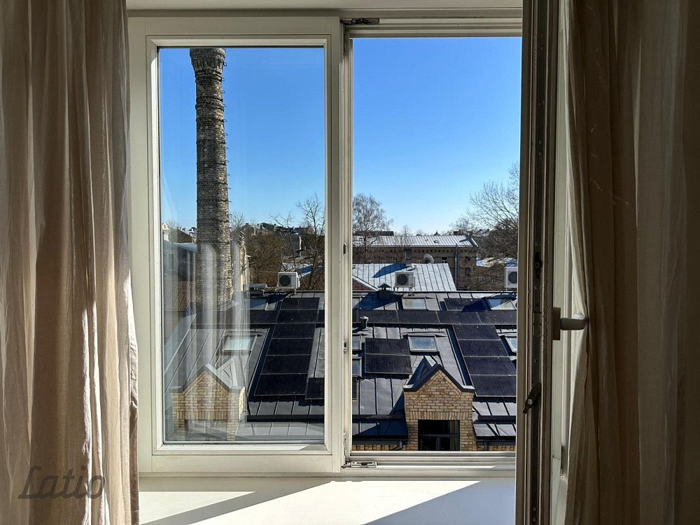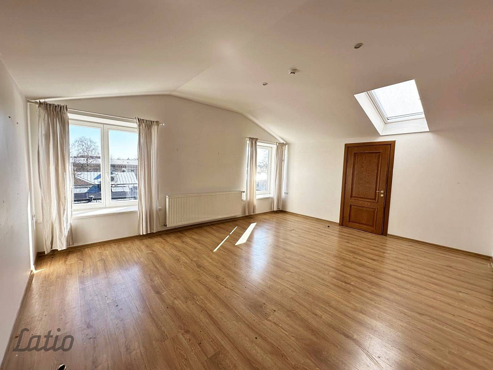 Četru istabu dzīvoklis 2017.gadā renovētā mūra nama, kas būvēts funkcionālisma stilā 1934.gadā, mansarda stāvā. Grīdas platība 77 kvm, lietderīgā platība (virs 1,6m) - 49,5kvm.