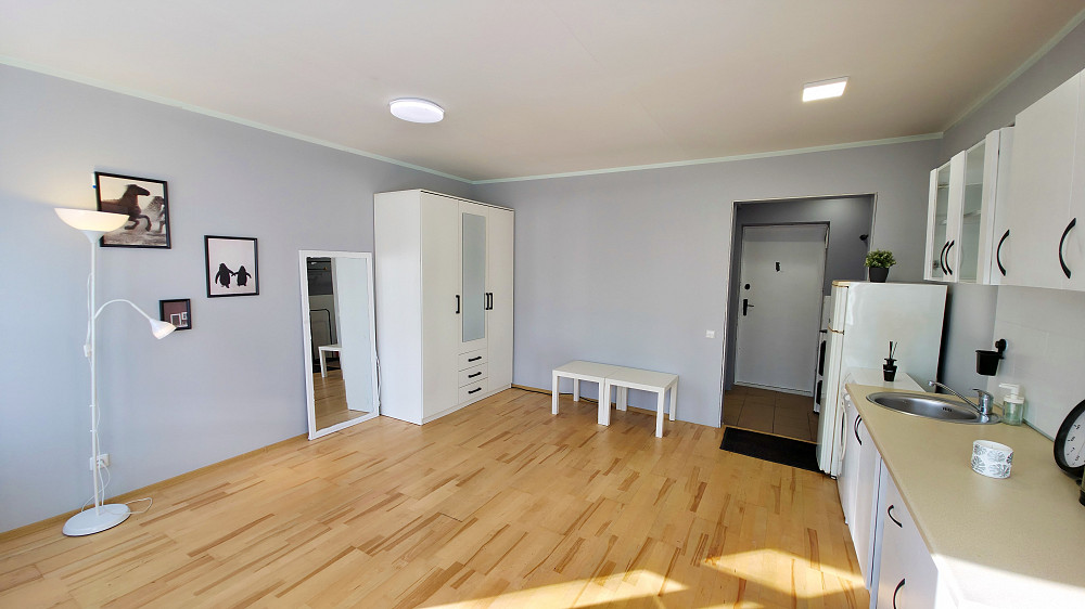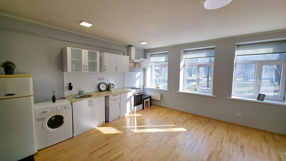 Pārdodam studio tipa 1-istabu dzīvokli, tuvu Rīgas centram, blakus parkam.