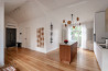 Ozolkoka parkets, restaurētas vēsturiskās iekšdurvis un koka pakešu logi, kas saglabā mājas autentisko raksturu.
