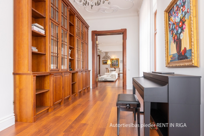Эта красивая квартира в стиле модерн является смесью романтики и изысканности, что делает ее идеальным выбором для тех, кто ищет элегантное жилье в центре Риги. Квартира имеет высокие потолки, карнизы, двойные двери, камин и люстры. Квартира состоит из просторной гостиной, светлого кабинета /библиотеки, большой спальни, дополнительной спальни, отдельной кухни, ванной комнаты и хозяйственной комнаты. Оформление и просторные комнаты создают особую атмосферу спокойствия и дружелюбия. Квартира полностью меблирована и готова к заселению, позволяя вам немедленно начать наслаждаться городским образом жизни. Окна квартиры выходят на три стороны здания, обеспечивая широкие вид и естественное освещение. Расположенная в центре города, но вдали от шума и суеты, эта квартира идеально подходит для людей, которые ценят частную жизнь и мир. Во дворе гарантированное парковочное место.